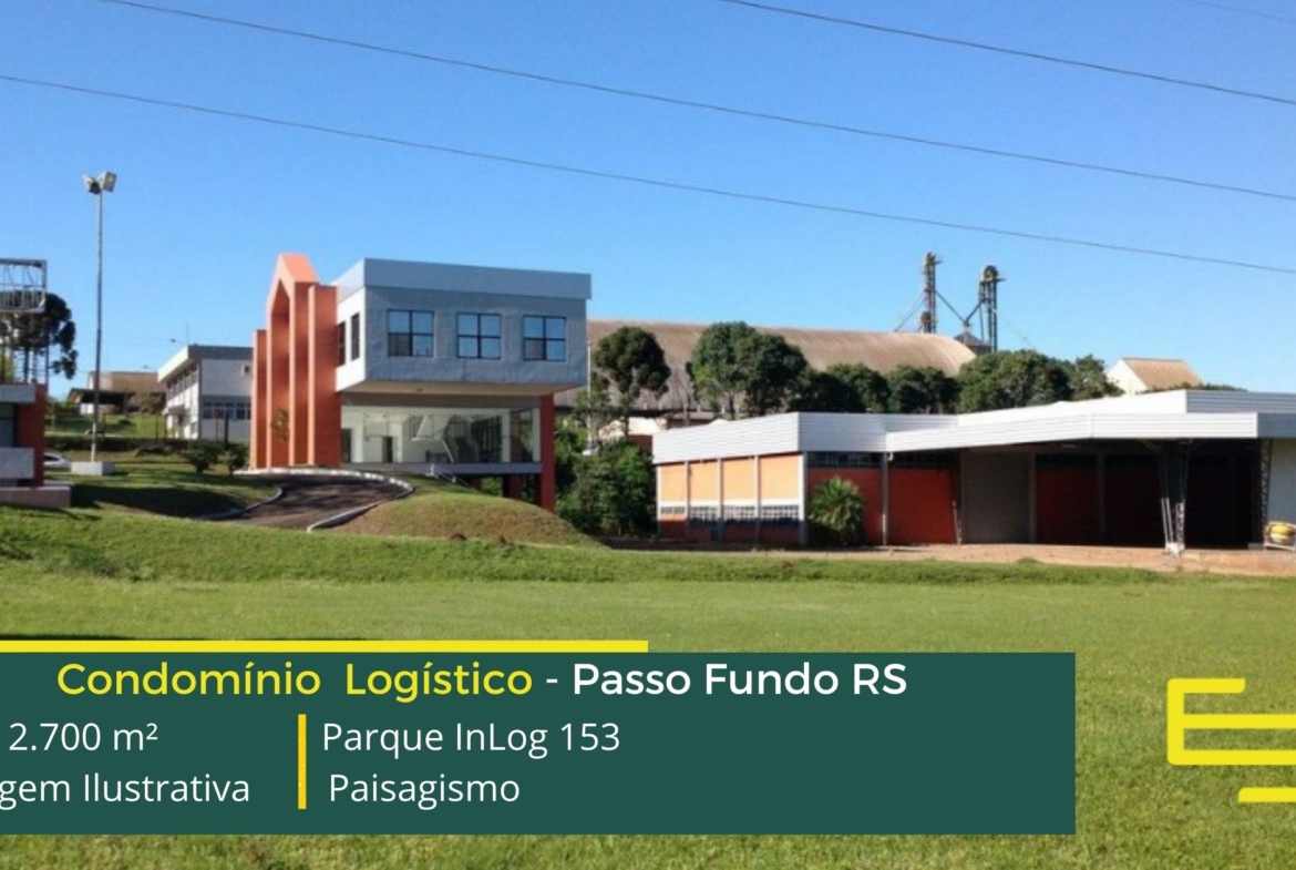 Galpão para alugar em Passo Fundo RS estrategicamente localizado na Rodovia ERS 153, Km 02, a 1 km da RS 135, o condomínio logístico Parque InLog 153 possuí área total construída de 2.700 m² e que sobretudo, permite aluguel modular e flexível de galpões a partir de 300 m².