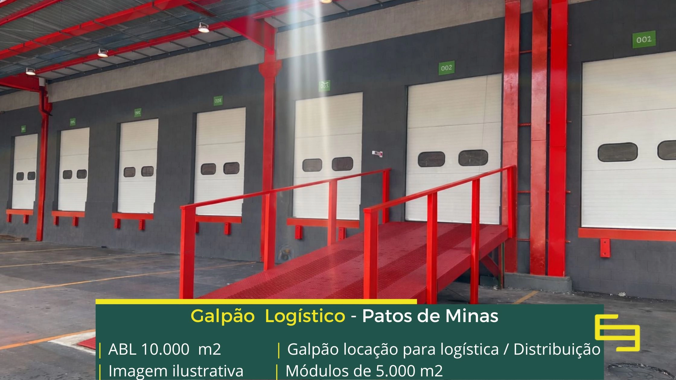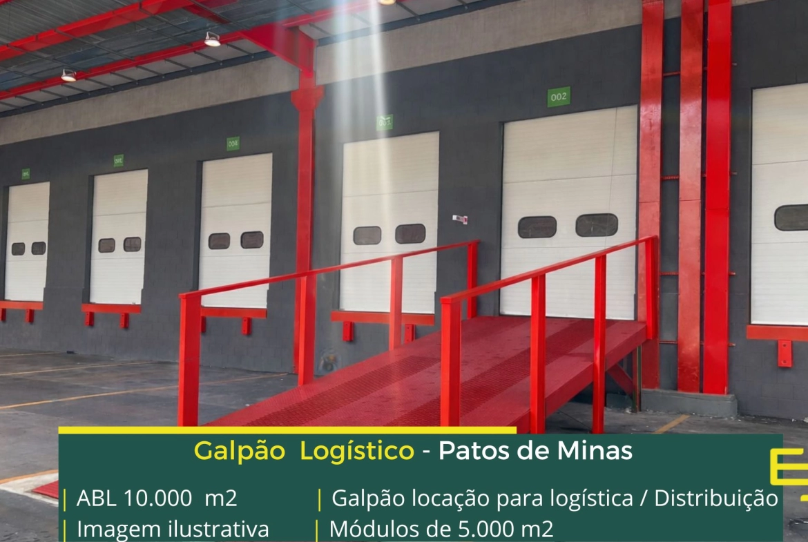 - Galpão para alugar em Patos de Minas com docas;