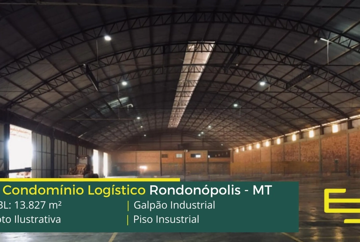 Aluguel de galpão em condomínio logístico na cidade de Rondonópolis desenvolvido para operações logísticas de distribuição e sobretudo transportes, que possuem as seguintes comodidades: