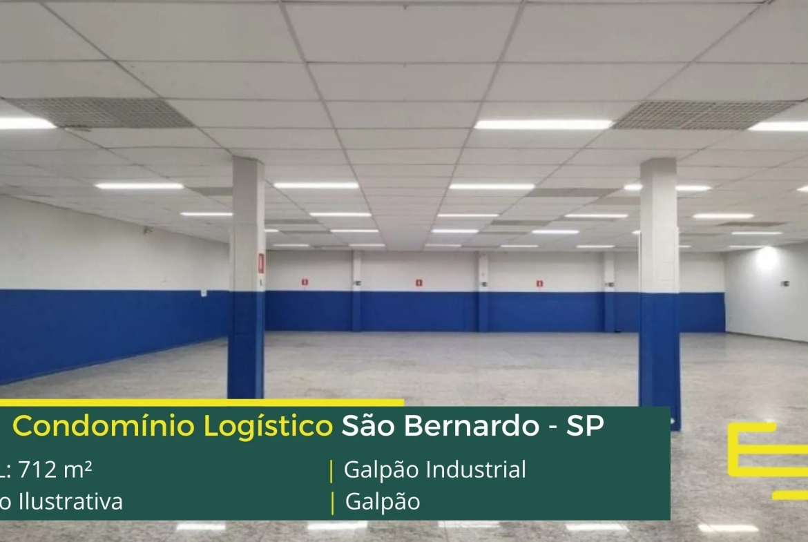 Galpão para Alugar em São Bernardo SP – que é ideal para logística, transportes e além disso, distribuição, possui diferencial em sua localização, a 2,8 km da Rod. Anchieta este galpão para locação possuí área locável total de 712 m².