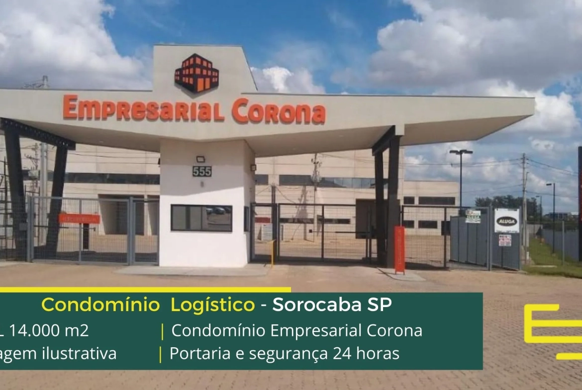 Galpão para alugar em Sorocaba SP em condomínio logístico com fácil acesso a Rodovia Santos Dumont (SP 075) e a Rodovia SP 079, e as cidades de São Roque e Itu, o Condomínio Empresarial Corona conta com área bruta locavel de 14.000 m2 e que sobretudo possibilita aluguel de galpões em Sorocaba a partir de módulos de 823 m2.