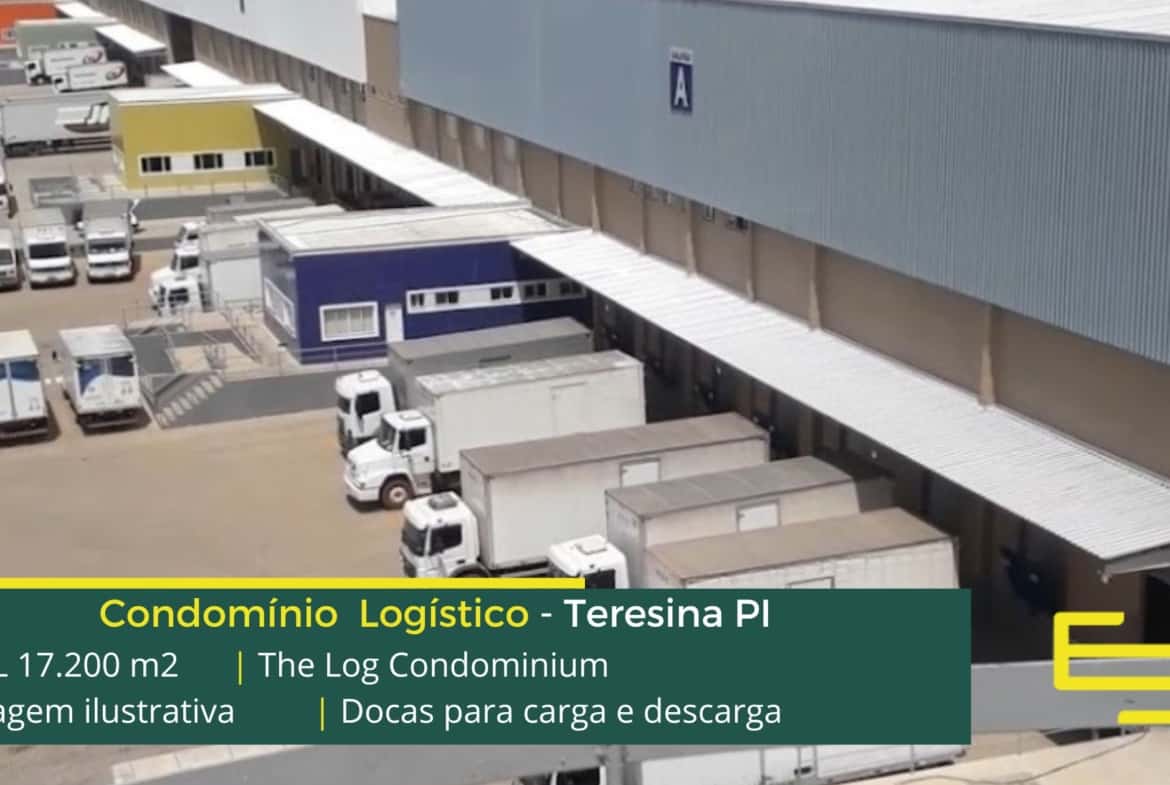 Aluguel de galpão em Condomínio logístico em Teresina PI com portaria e segurança, galpões modulares com área construída aproximada de 17.000 m2, e módulos que possuem docas para carga e descarga.