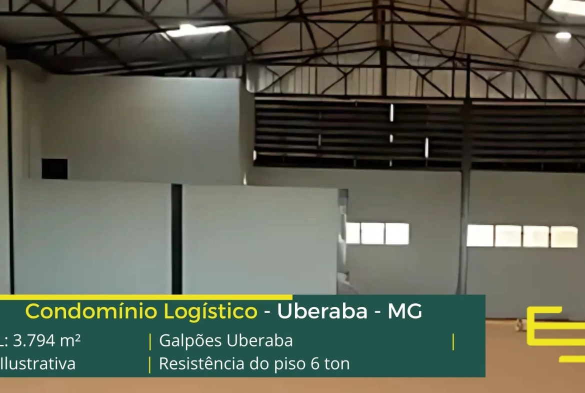 Galpão para alugar em Uberaba – galpão logístico com localização privilegiada, localizado as margens da Rod. Senador Eliseu Resende. O galpão logístico conta com área total construída de 3.794 m², e permite alugar galpão com modulação a partir de 607 m² a 928 m²;