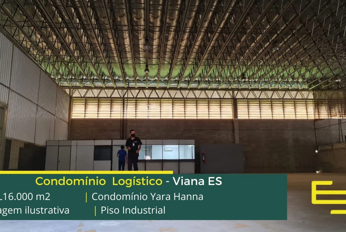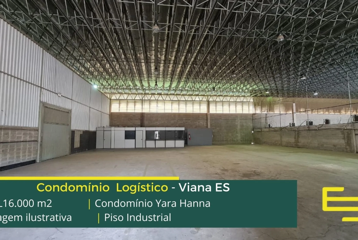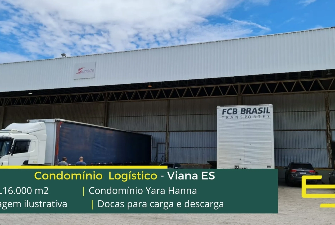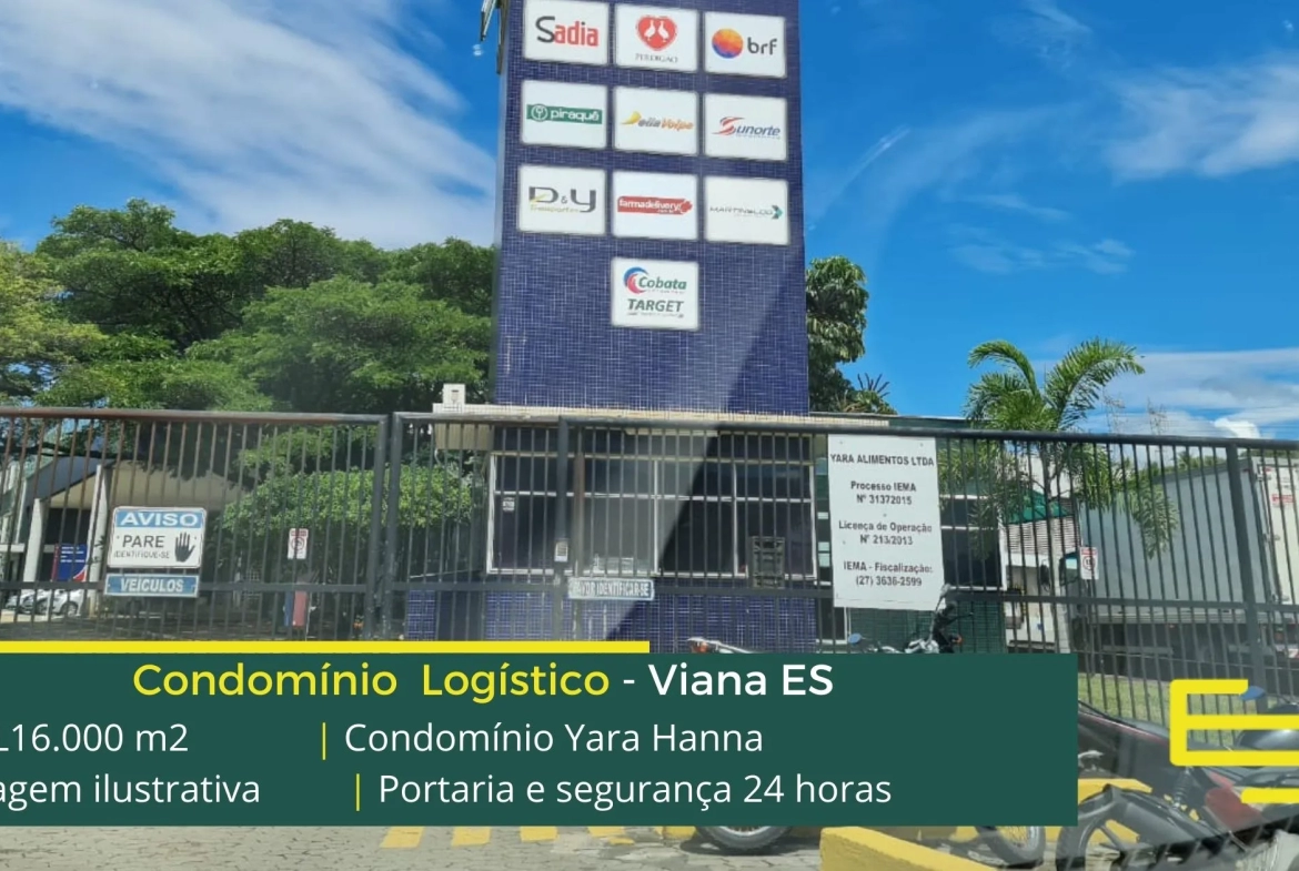 Galpão para alugar em Viana ES, em condomínio logístico que est localizado a 600 metros da BR 262/101, e a 12 km de Vitória, com fácil acesso a Vila Velha, o Condomínio Yara Hanna conta com área construída de 17.000 m2 e além disso, possibilita aluguel de galpões em Viana ES a partir de 360 m2.