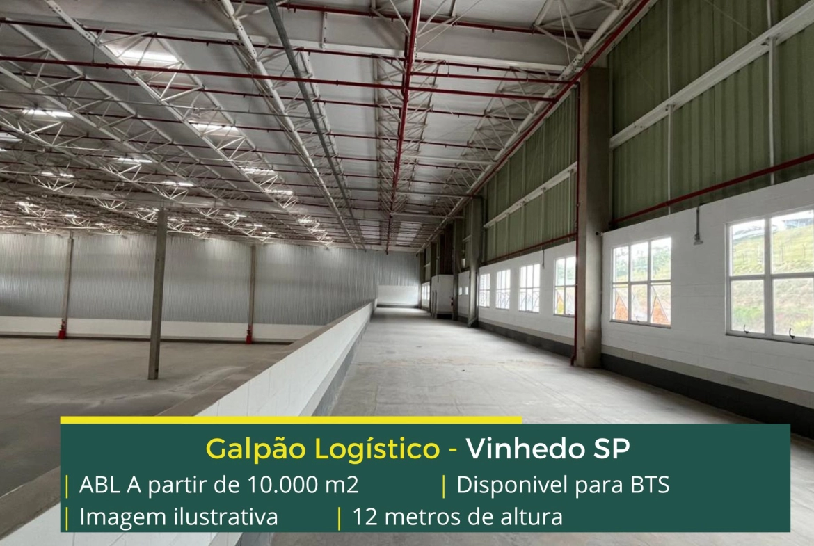 Galpão para alugar em Vinhedo SP em terreno localizado as margens da Rodovia Anhanguera, com fácil acesso as cidades de Campinas e Jundiaí, e a Rodovia José Roberto Magalhães Teixeira (Sp-083), através de contrato de built to suit (BTS), onde o projeto é desenvolvido de acordo com as especificações do locatário, e sobretudo, possibilita aluguel de galpões em Vinhedo SP a partir de 10.000 m2.
