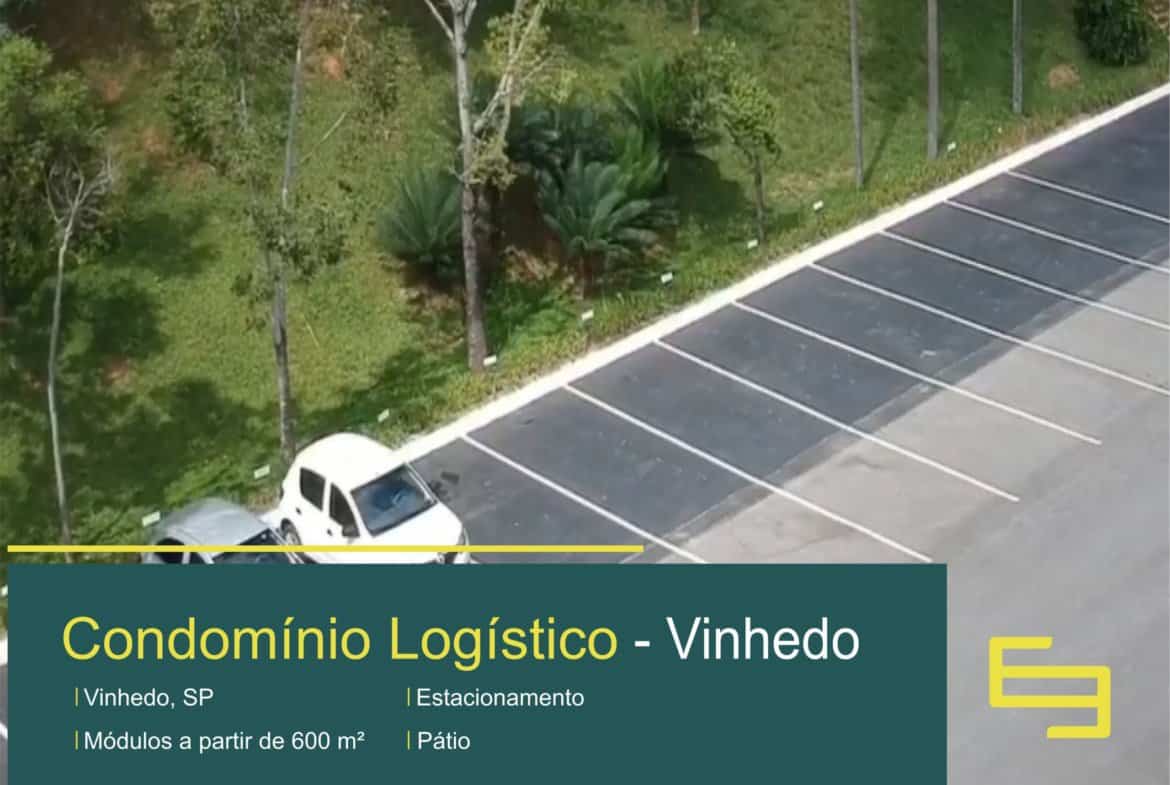 Condomínio logístico de galpão para alugar em Vinhedo SP conta com amplo estacionamento interno e externo e além disso: