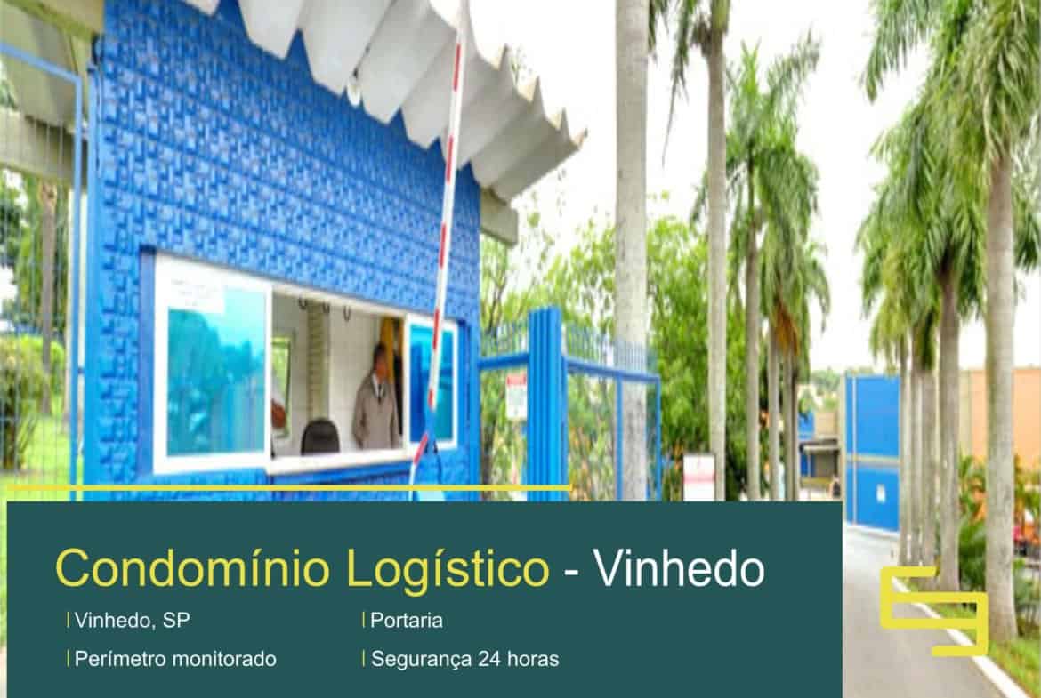 O condomínio de galpões para locação em Vinhedo, possui portaria e além disso, segurança 24 horas com controle informatizado de acesso.