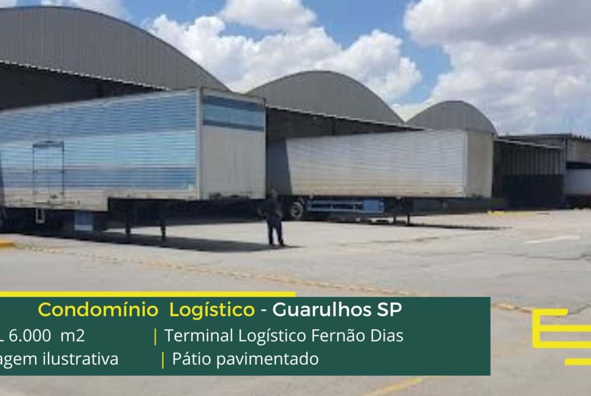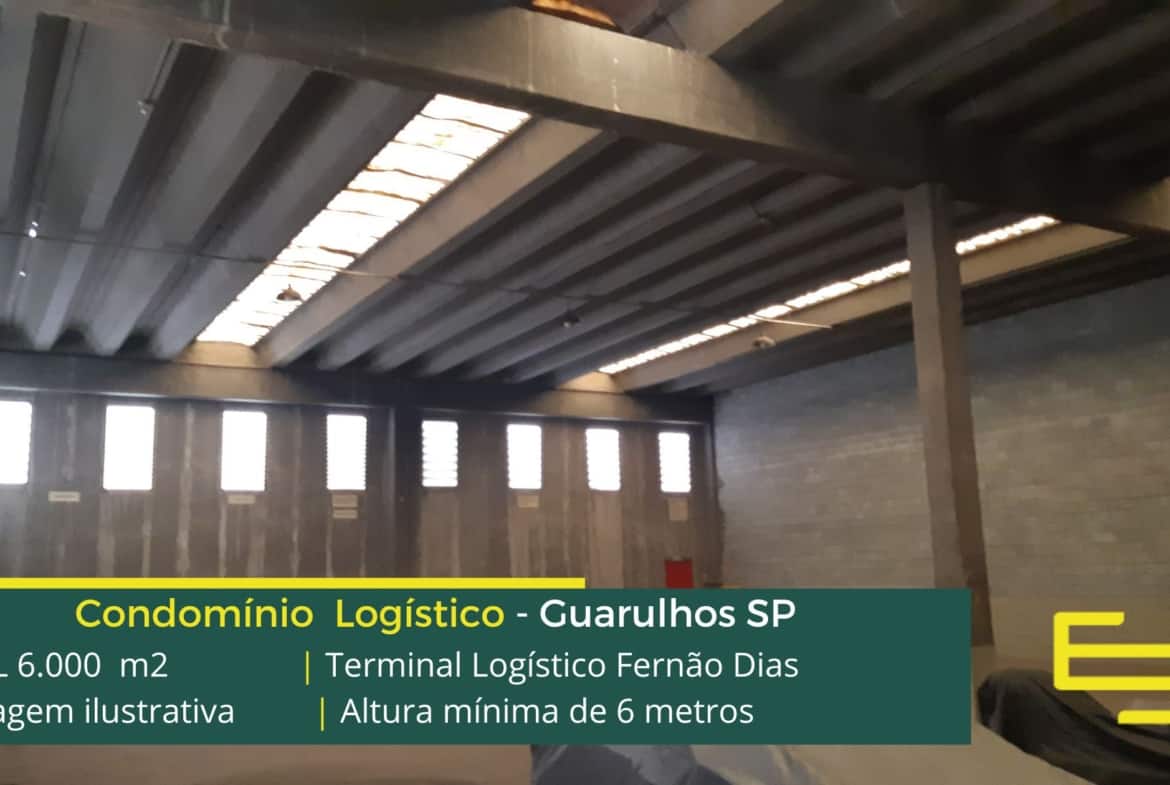 Galpão para alugar em Guarulhos SP localizado as margens da Rodovia Fernão Dias com fácil acesso ao Aeroporto de Cumbica e além disso, a marginal Tiete, o Terminal Logístico Fernão conta com área total construída de 6000 m2 e possibilita locação de galpões em Guarulhos SP a partir de 1000 m2.