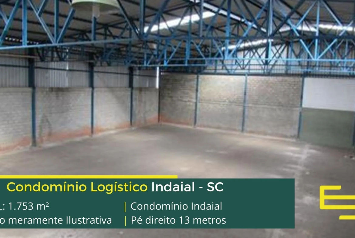 Galpão para alugar Indaial – em condomínio logístico com localização privilegiada, localizado as margens da BR-470. O condomínio Logístico Indaial conta com área total locável de 1.753 m²;