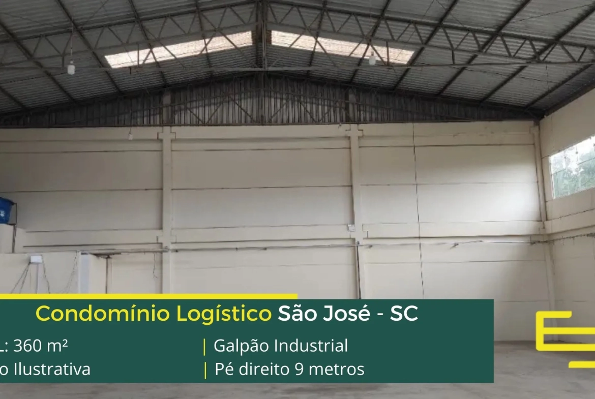 Galpão para alugar São José – que é ideal para logística, transportes e além disso, distribuição, possui diferencial em sua localização, 300 metros da Rod. SC-281, este galpão para locação possuí área locável total de 360 m².