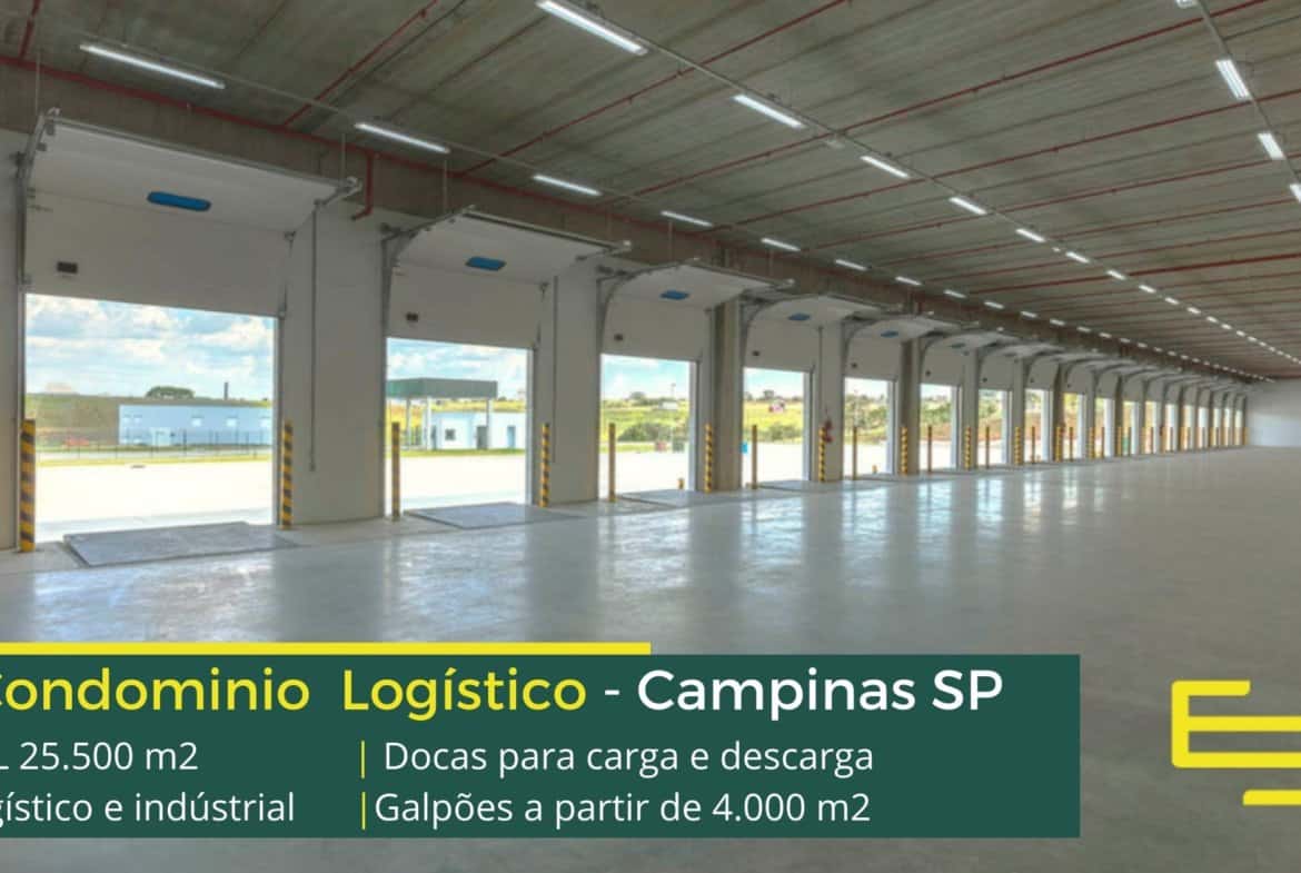 Galpão logístico para locação em Campinas SP, em condomínio fechado, com fácil acesso às principais rodovias da região, e além disso, galpões cross-docking e com 43 docas com niveladoras e 2 rampas.
