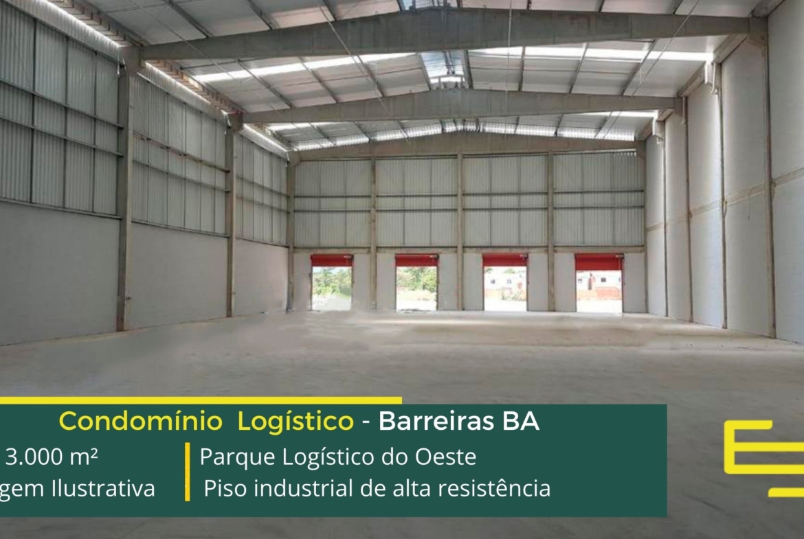 Galpão para locação em Barreiras BA – Parque Logístico do Oeste. Localizado estrategicamente no anel viário de barreiras, e além disso, a 300 metros da BR 135, este condomínio industrial e sobretudo logístico com área total construída de 3.000 m², e permite aluguel de galpões a partir de 900 m2.