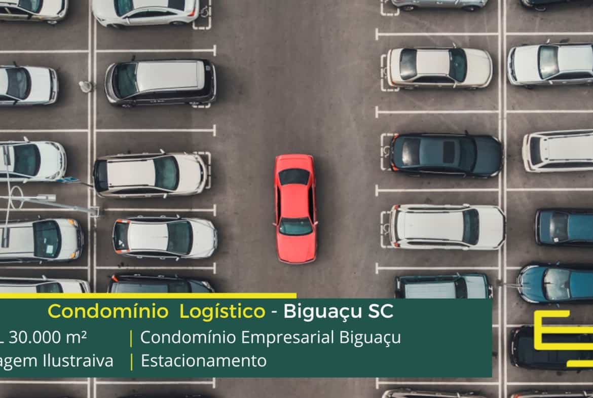 Condomínio logístico de aluguel de galpões em Biguaçu conta com amplo estacionamento interno e externo além disso: