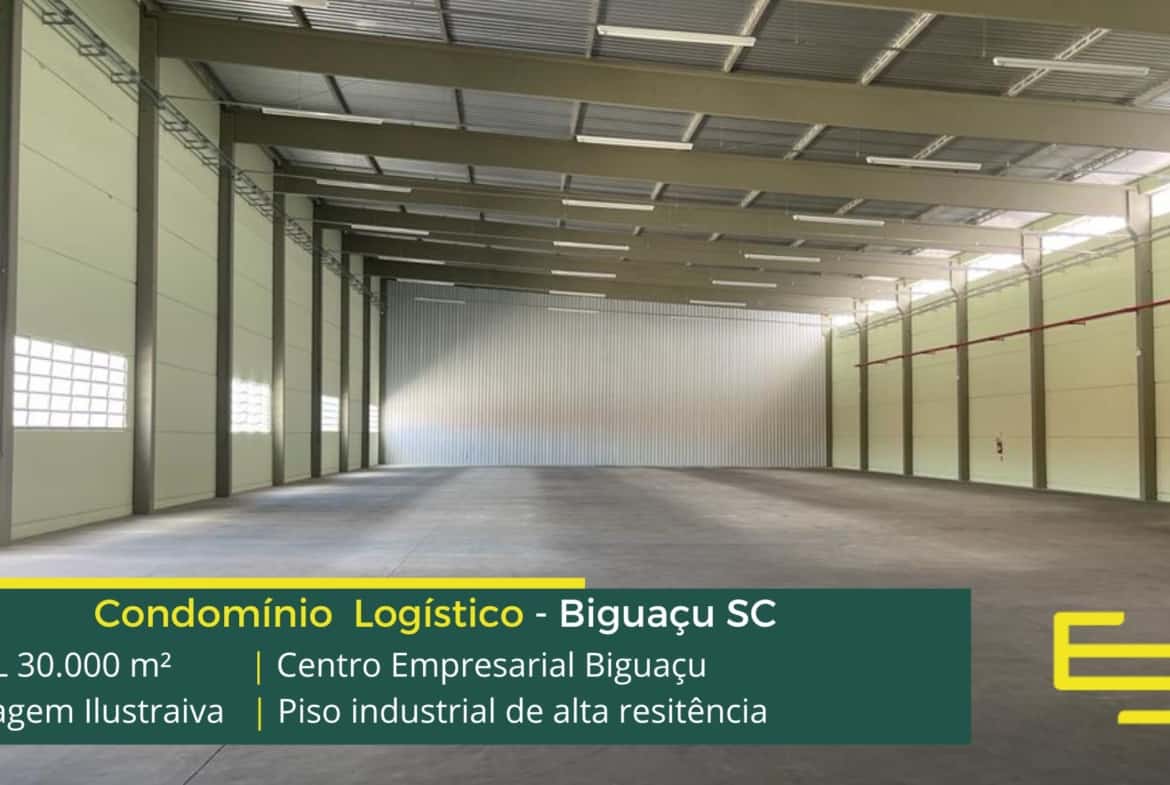 - Galpões para alugar em Biguaçu SC com piso industrial e polido.