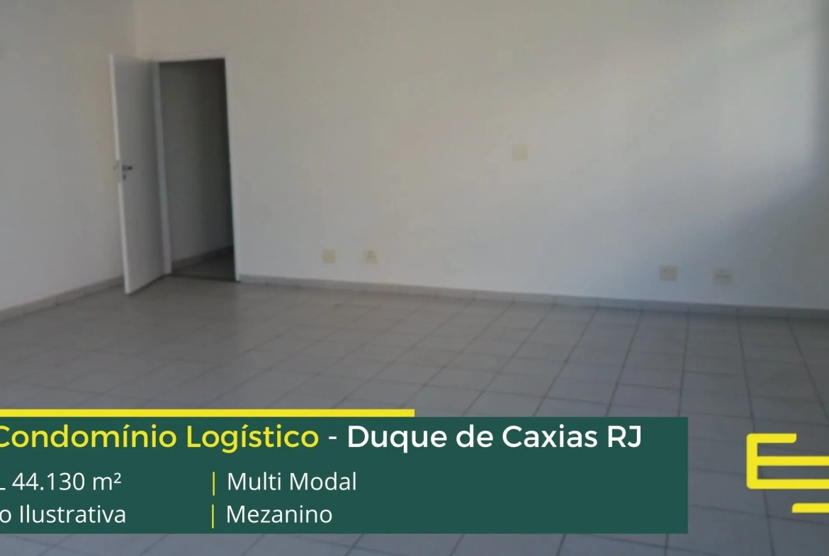 Galpão logístico para locação em Duque de Caxias RJ, em condomínio fechado, com alto padrão de segurança, como portaria e segurança e além disso, galpões com niveladores de docas, vagas privativas de automóveis e mezanino para escritório com copa, banheiros masculino e feminino.
