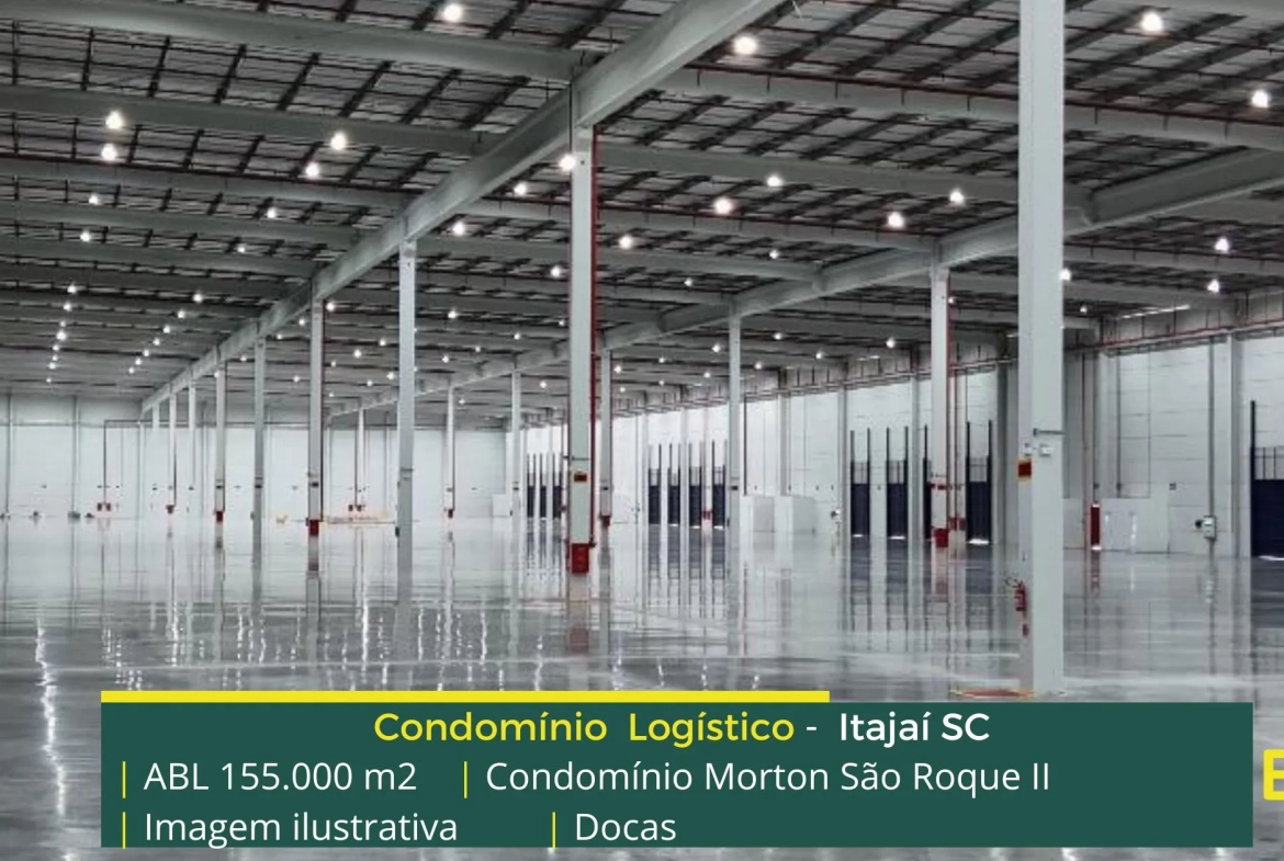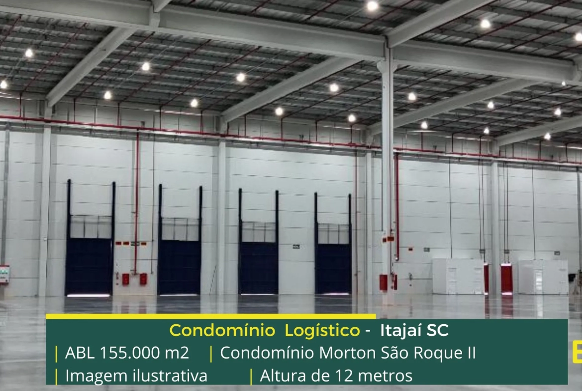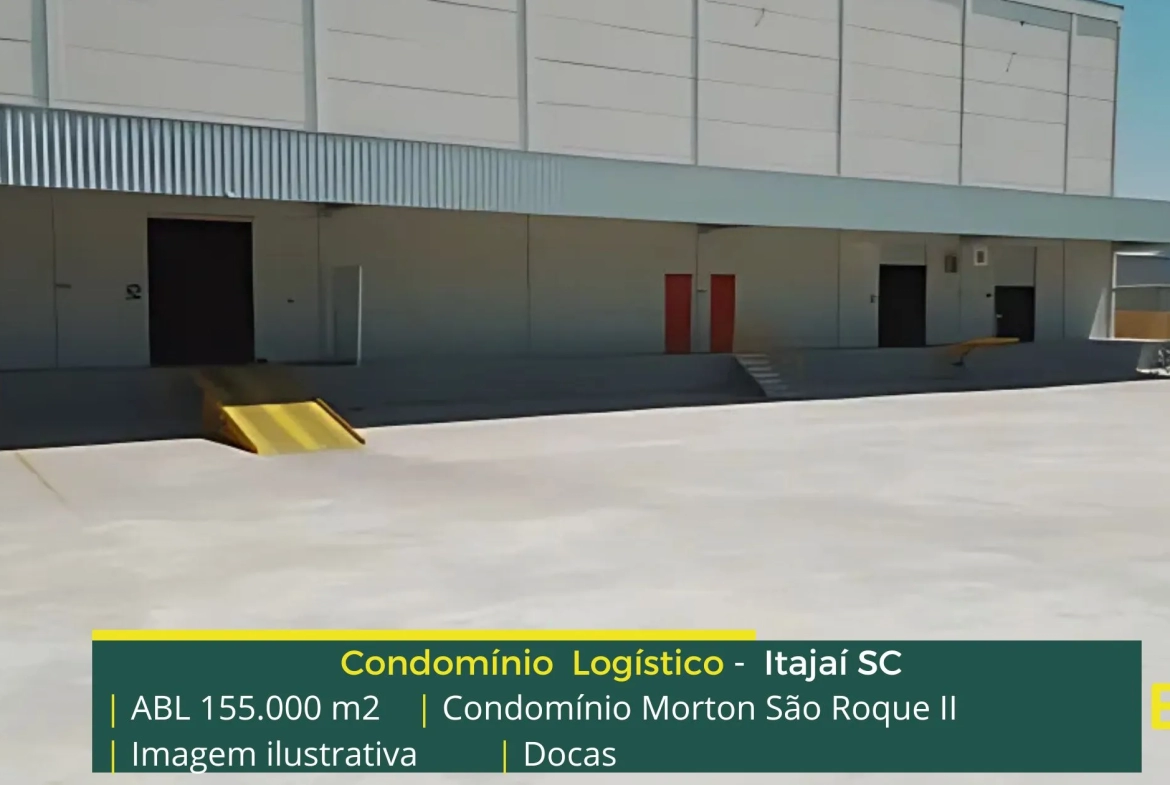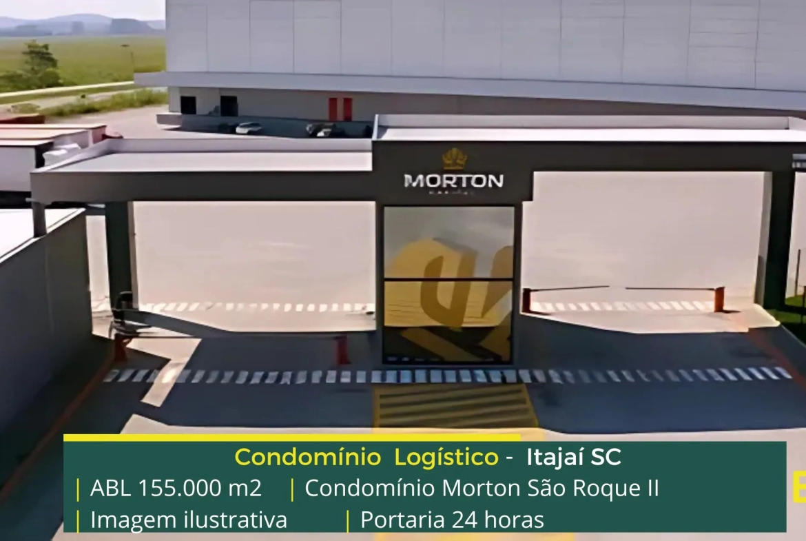 Galpão para locação em Itajaí SC localizado em condomínio logístico a 3,7 km da Rodovia Governador Mário Covas (BR101) a 4,7 KM da Rodovia Jorge Lacerda e além disso o condomínio terminal Morton São Roque II conta com área locável de 155.000 m², e possibilita aluguel de galpões com modulação a partir de 2.750 m².