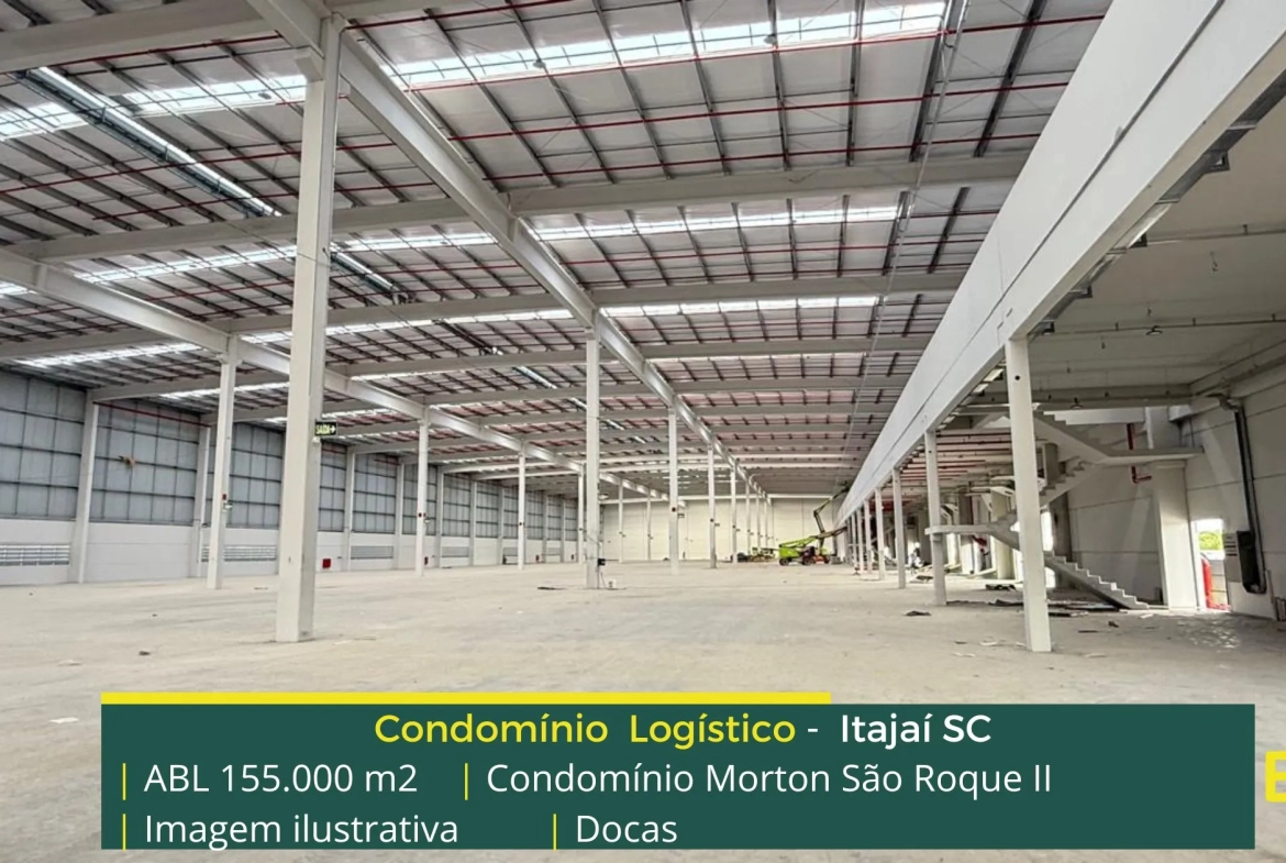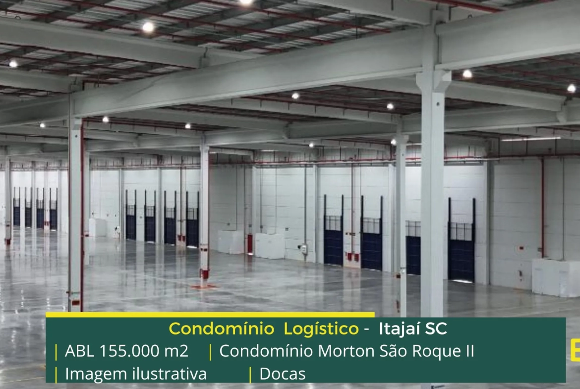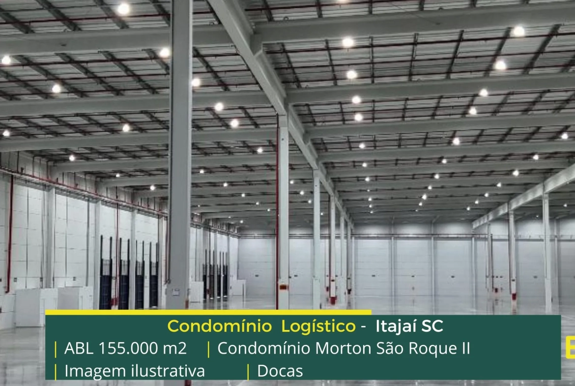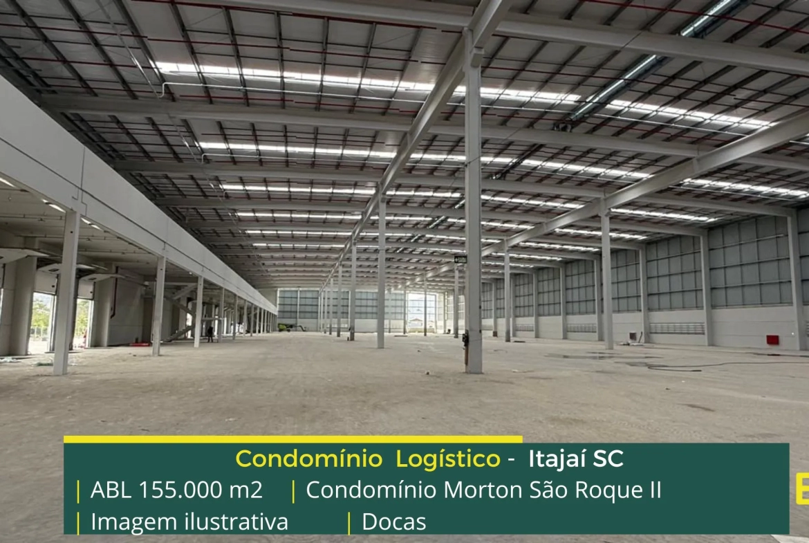 Galpão para locação em Itajaí SC localizado em condomínio logístico a 3,7 km da Rodovia Governador Mário Covas (BR101) a 4,7 KM da Rodovia Jorge Lacerda e além disso o condomínio terminal Morton São Roque II conta com área locável de 155.000 m², e possibilita aluguel de galpões com modulação a partir de 2.750 m².