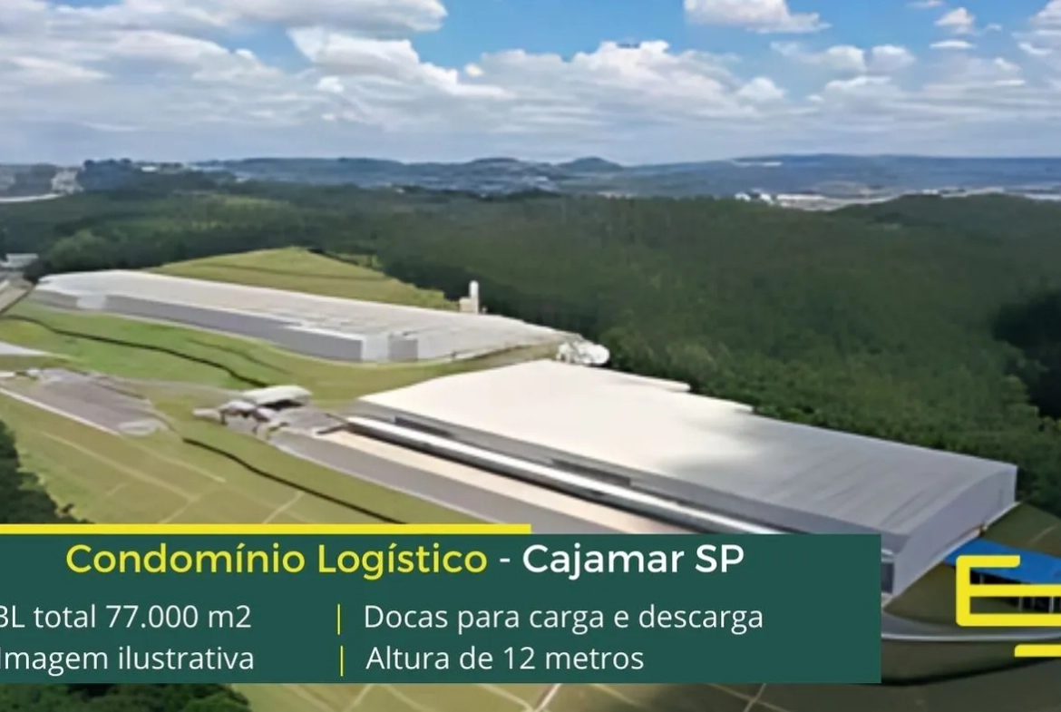Galpão logístico para alugar em Cajamar SP, condomínio fechado, com segurança 24 horas, portaria blindada, e além disso com alto padrão de construção como usina de energia fotovoltaica (placas solares) e ainda galpões com docas e com eficiência logística superior ao padrão, com 90,02%.