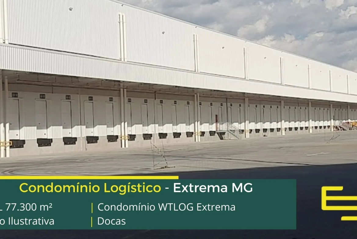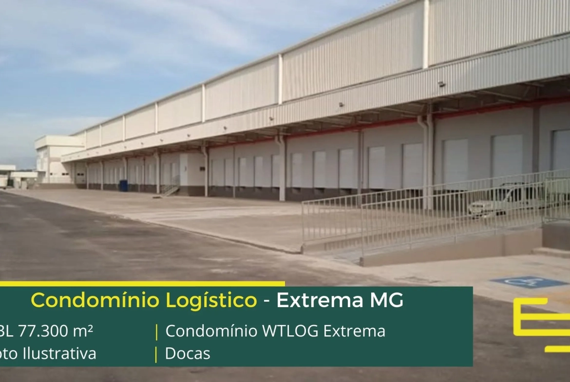 Galpão para alugar em Extrema MG, em condomínio logístico, com segurança 24 horas, clausura de caminhões e automóveis, e sobretudo, docas para carga e descarga, possui 70 vagas para caminhões e 234 vagas para carros.