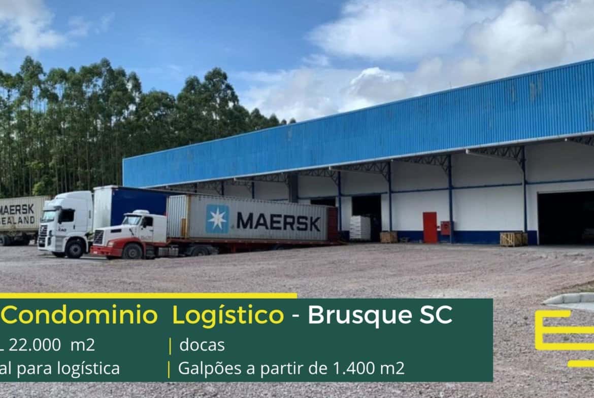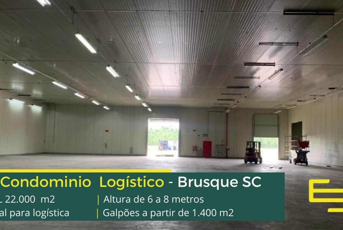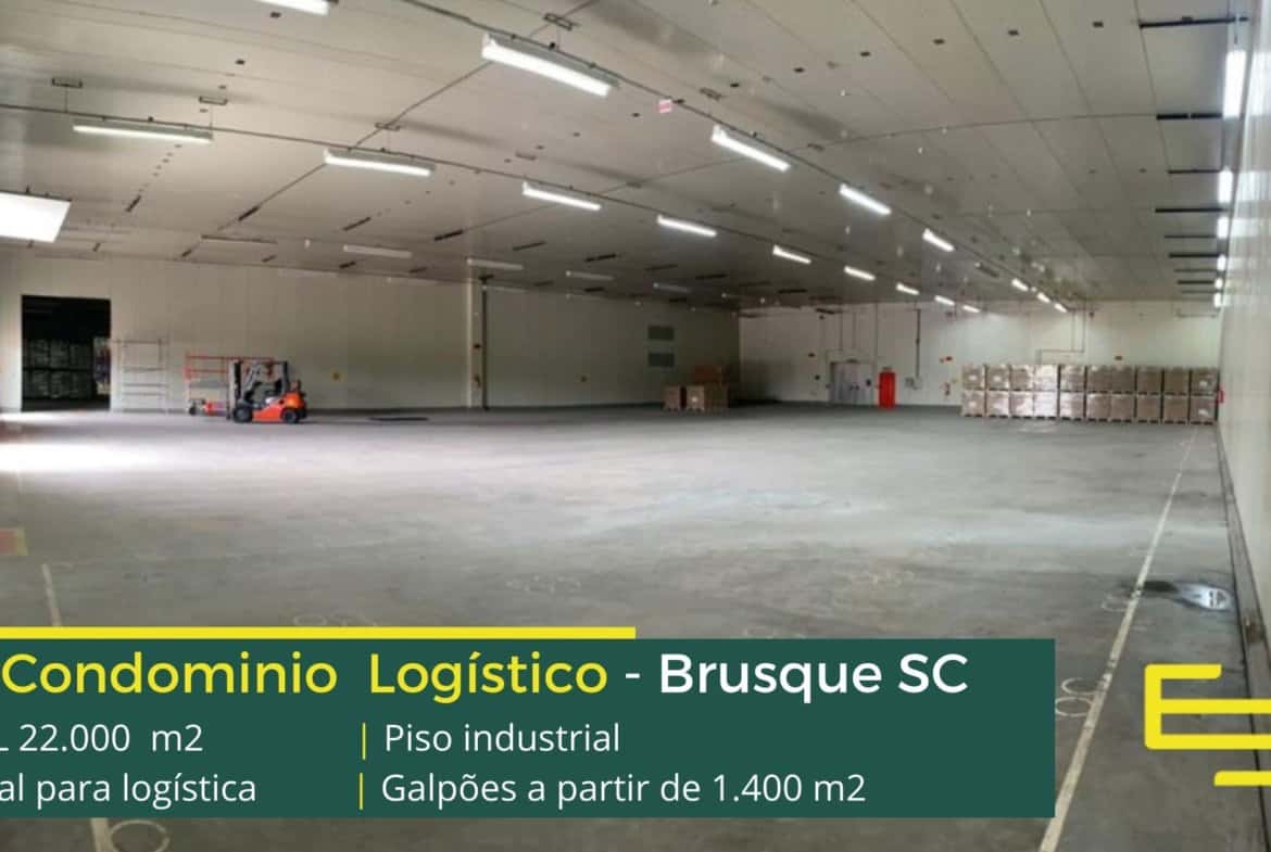 Galpão logístico e industrial para alugar em Brusque SC em condomínio com fácil acesso a Rodovia Antônio Heil, a BR 101 e sobretudo aos portos de Navegantes e Itajaí.