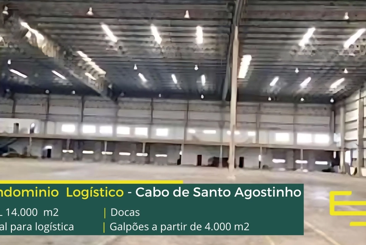 Galpão logístico para alugar em Cabo de Santo Agostinho, em condomínio com completa estrutura para operações de logística e além disso, distribuição, com segurança completa e galpões que possuem docas e pátio.