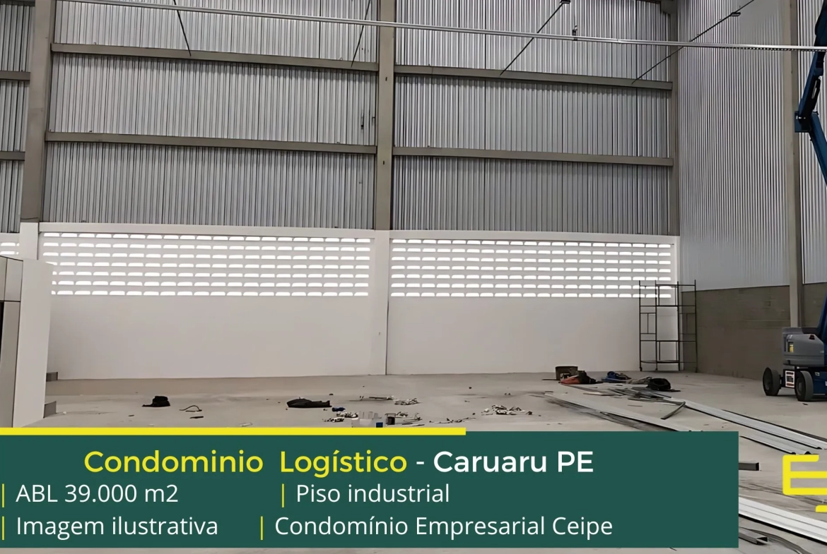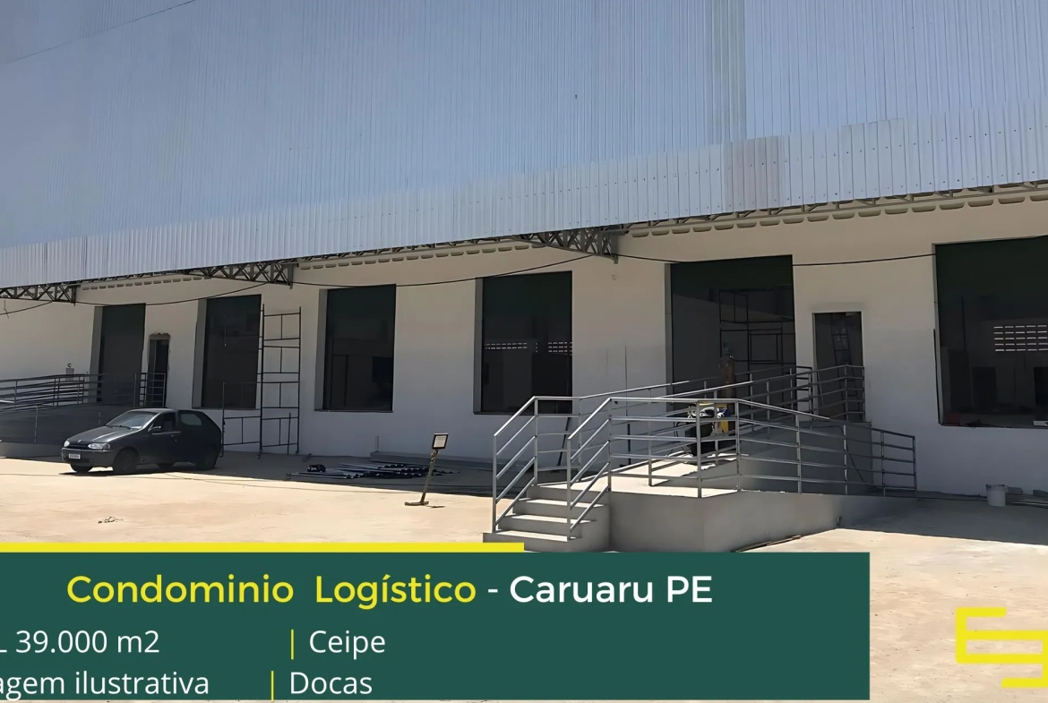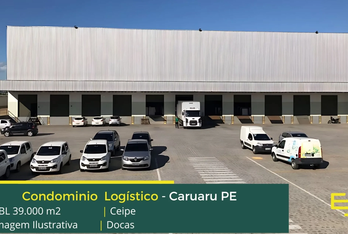 Aluguel de galpões em Caruaru PE em condomínio logístico que conta com portaria, segurança 24 horas, estacionamento, e sobretudo galpões com docas para carga e descarga e Iluminação zenital em policarbonato e também 20 metros livres entre pilares,
