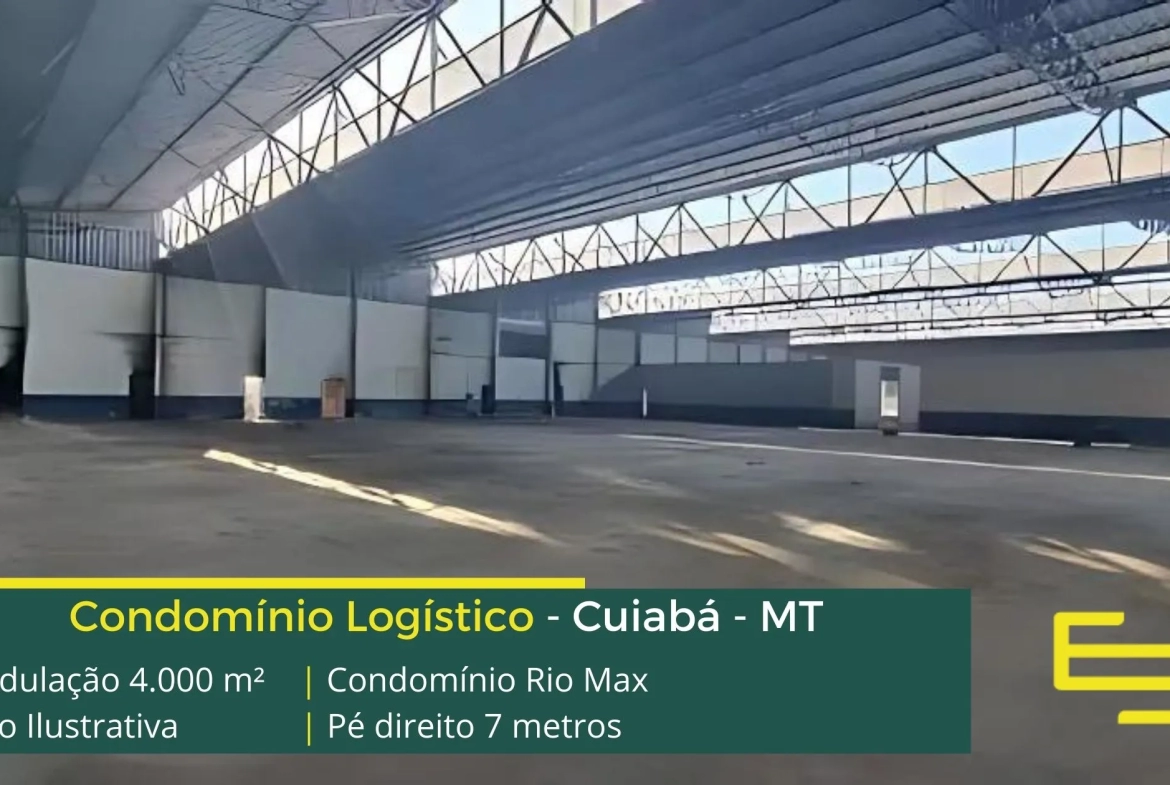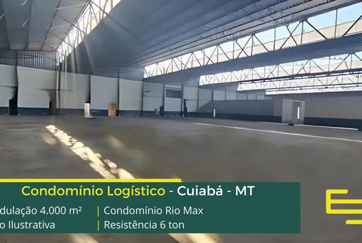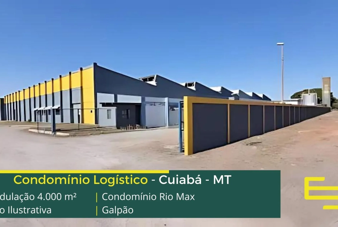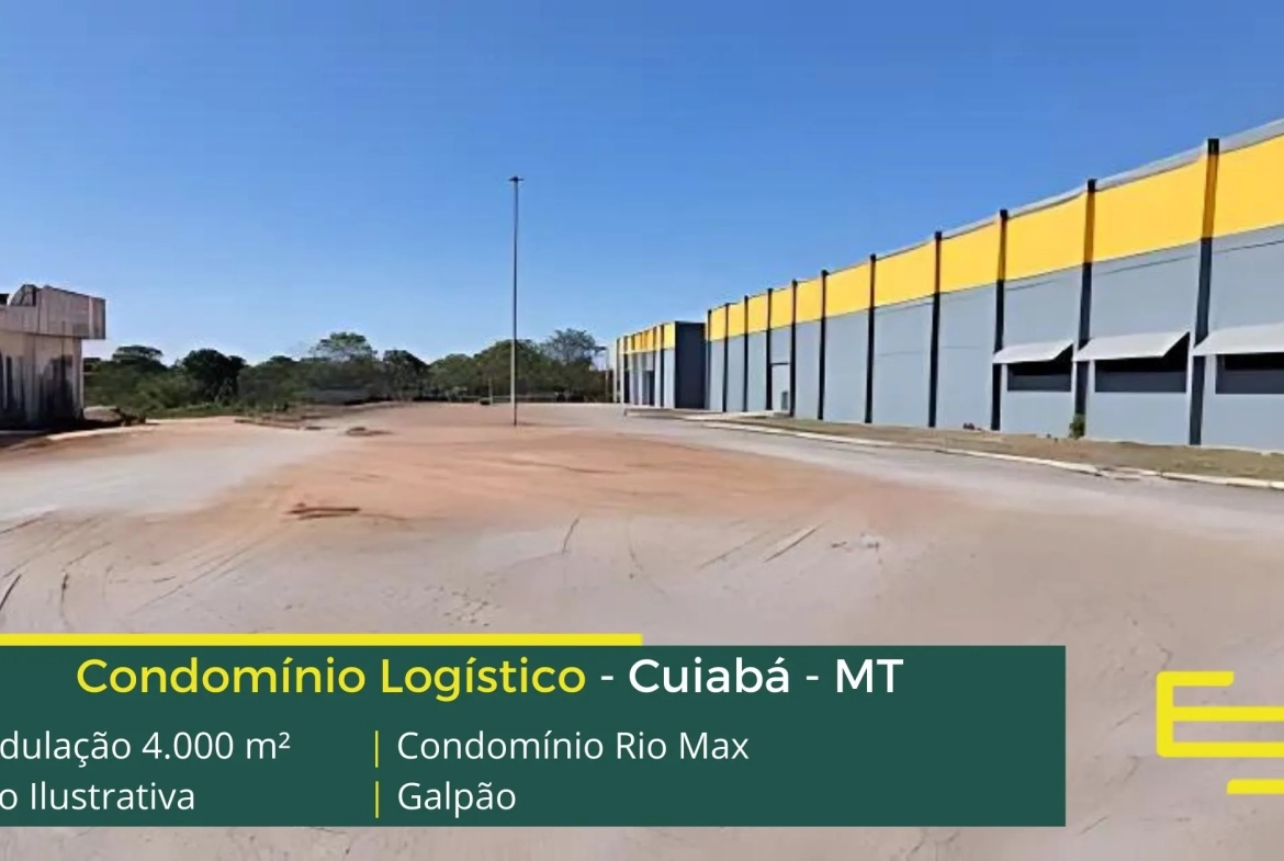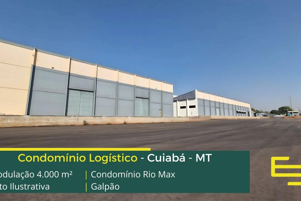 Galpões para alugar em Cuiabá em condomínio localizado no Distrito industrial de Cuiabá com fácil acesso a Rodovia BR 1363 e a Rodovia dos Imigrantes e ao centro da cidade, o Condomínio Rio Max para uso logístico, e além disso, distribuição e transportes, com localização privilegiada, o condomínio conta com ABL de 15.000 m2 e além disso, permite aluguel de galpão em Cuiabá com modulação de 2.500 m².