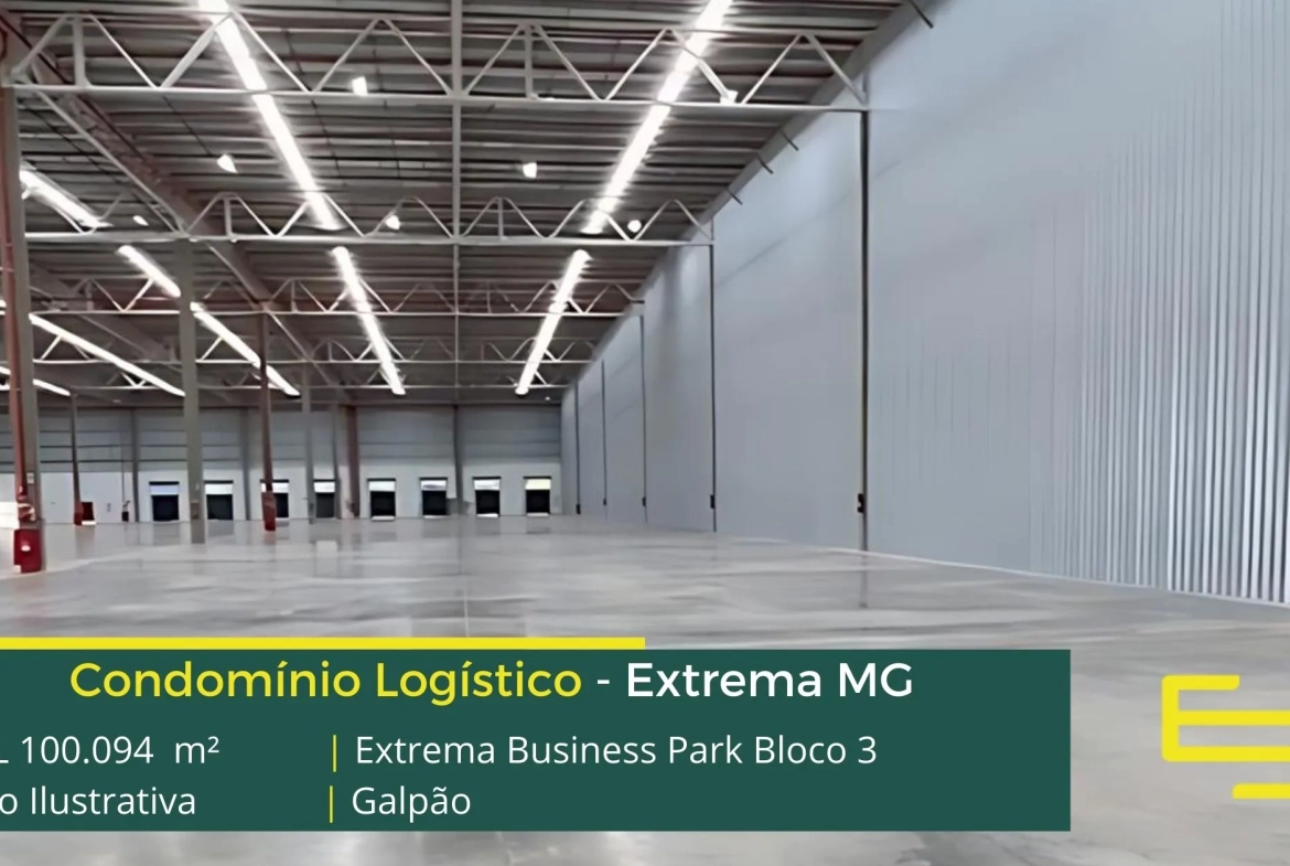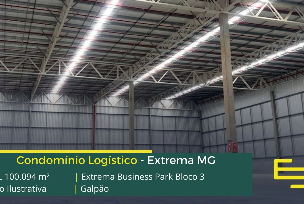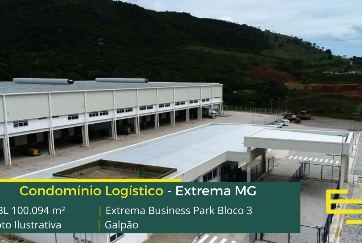 Aluguel de galpões logísticos em Extrema MG em condomínio logístico que está localizado na Rodovia Fernão Dias na Zona Industrial a 100 km da cidade de São Paulo, e que permite fácil aceso a Pouso Alegre e Varginha e além disso, ao Aeroporto de Guarulhos, O condomínio Extrema Business Park Bloco 3, permite locação de galpão em Extrema a partir de 3000 m2, e com área total construída de 26.773 m².