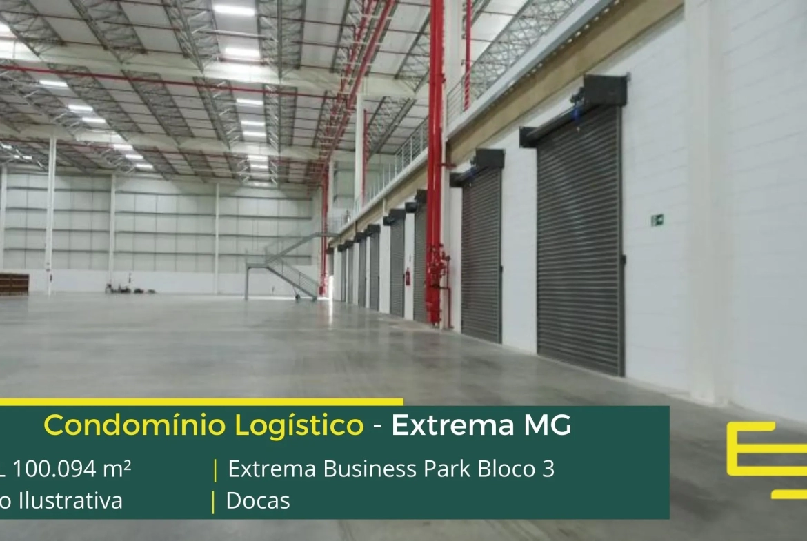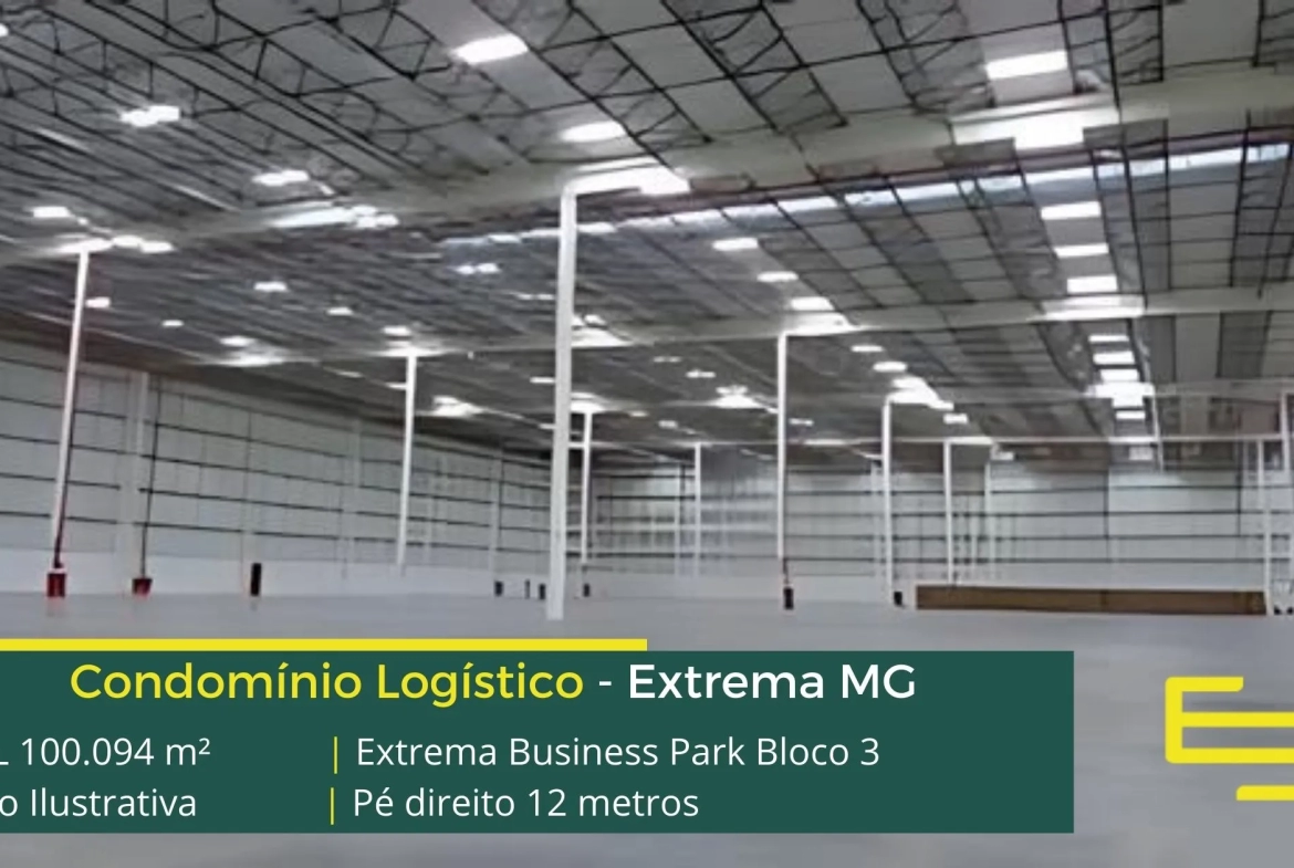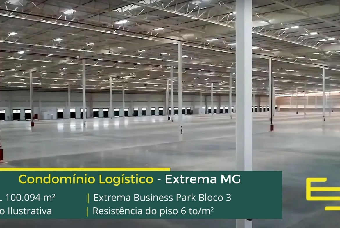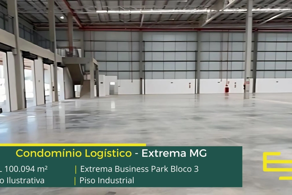 Aluguel de galpões logísticos em Extrema MG em condomínio logístico que está localizado na Rodovia Fernão Dias na Zona Industrial a 100 km da cidade de São Paulo, e que permite fácil aceso a Pouso Alegre e Varginha e além disso, ao Aeroporto de Guarulhos, O condomínio Extrema Business Park Bloco 3, permite locação de galpão em Extrema a partir de 3000 m2, e com área total construída de 26.773 m².