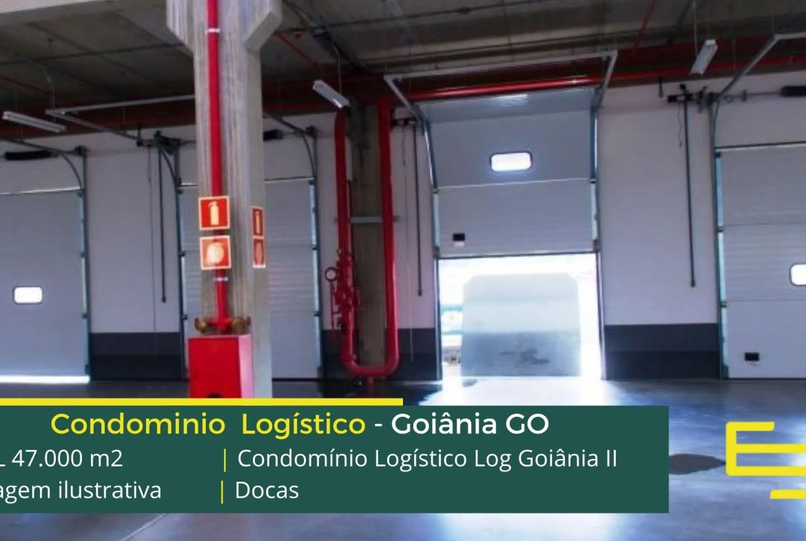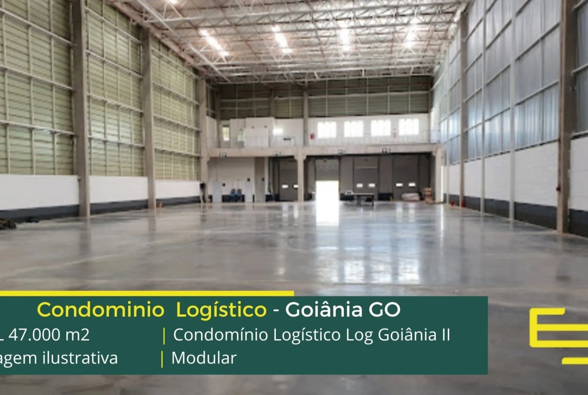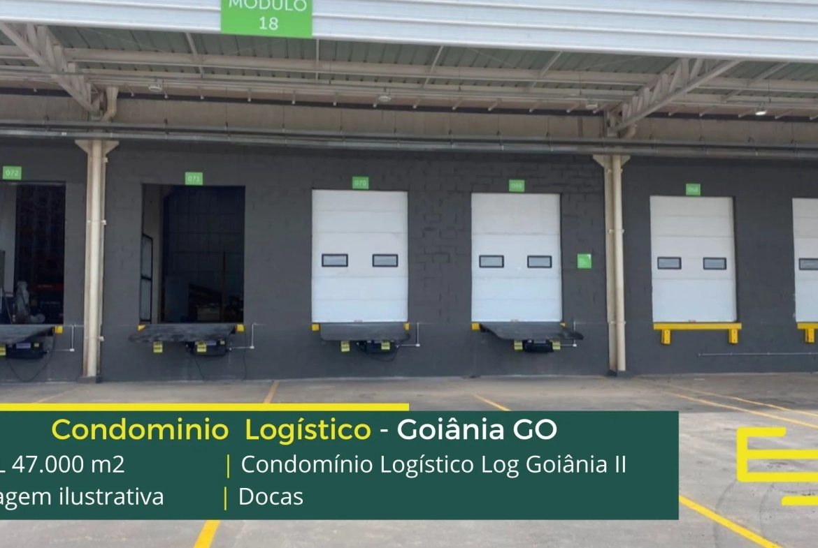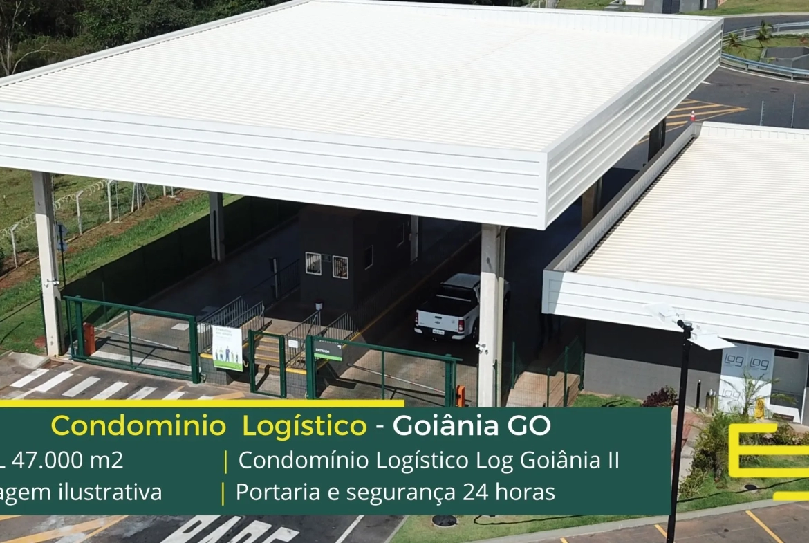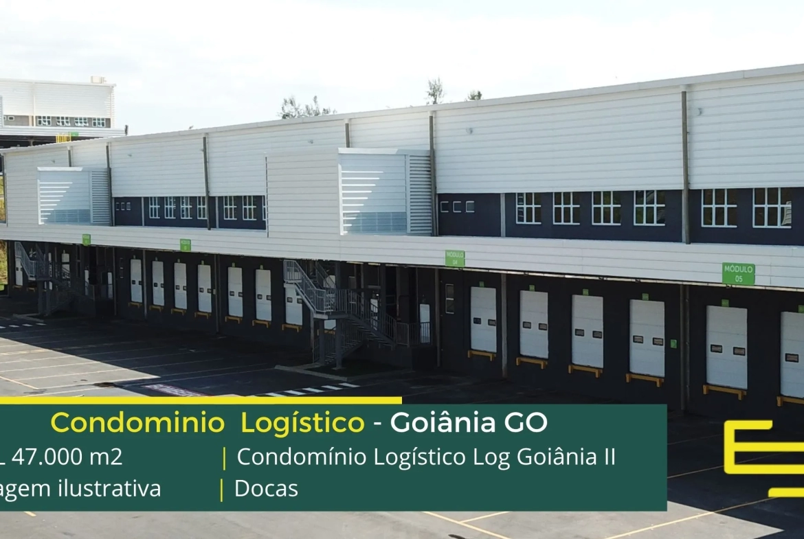 Aluguel de galpões logísticos na cidade de Goiânia, em condomínio com portaria 24 horas, CFTV e sobretudo, estacionamento e pátio de manobras, os galpões são modulares e conta com docas, altura de 12 metros e com mezaninos para uso administrativo.