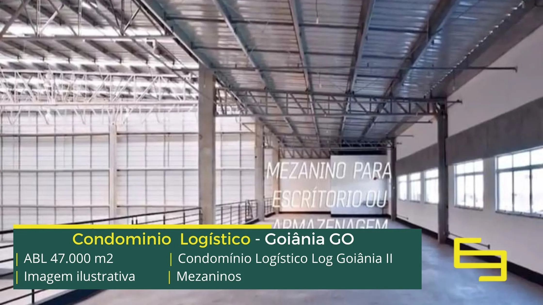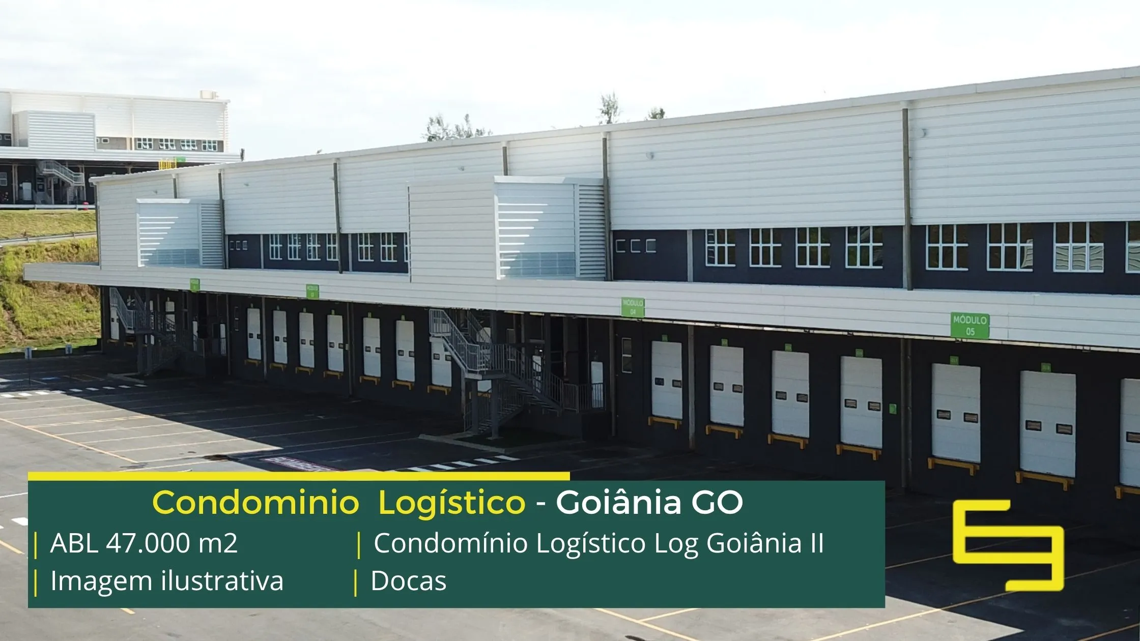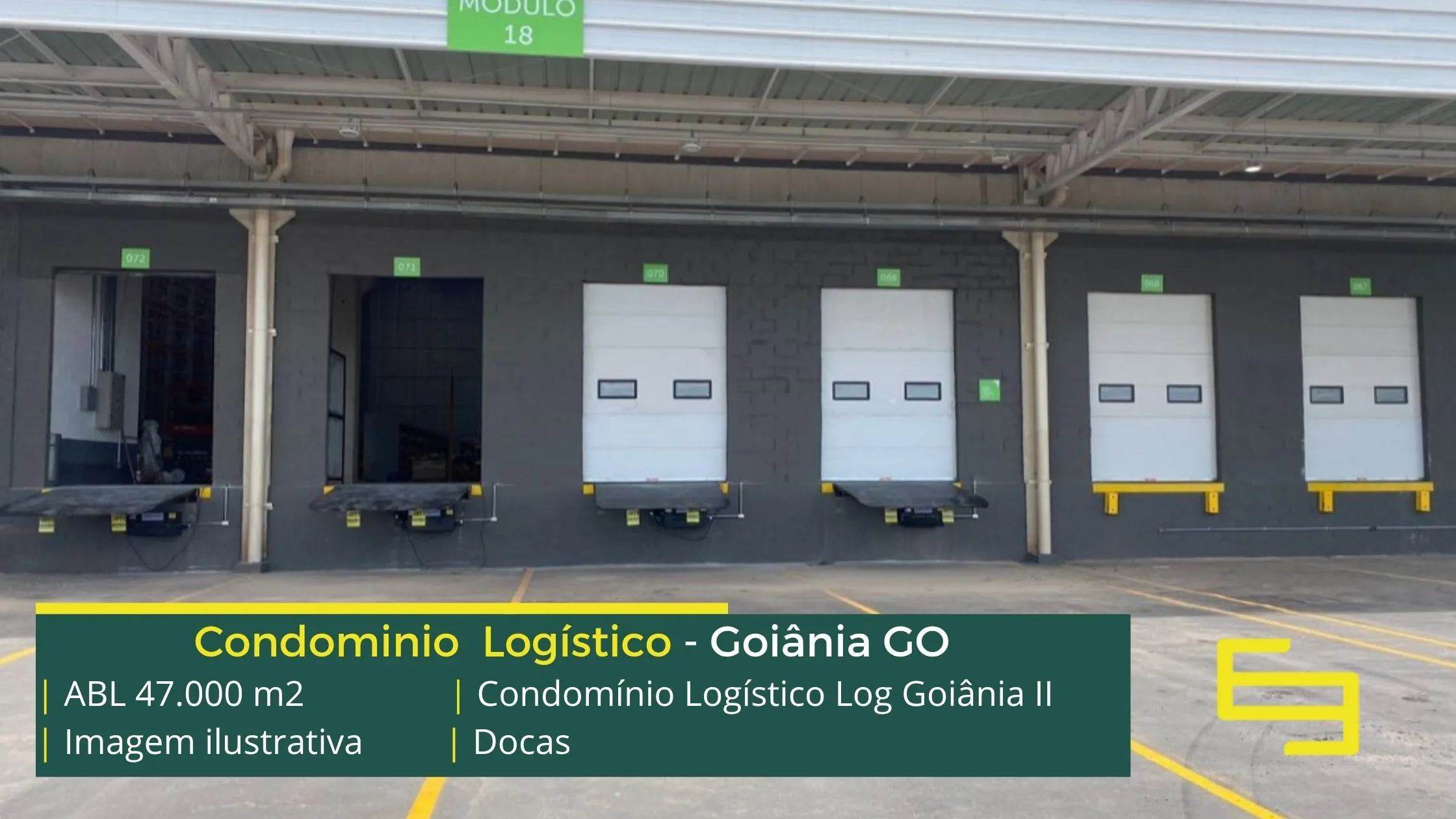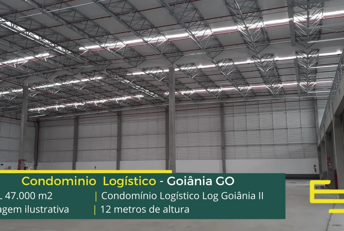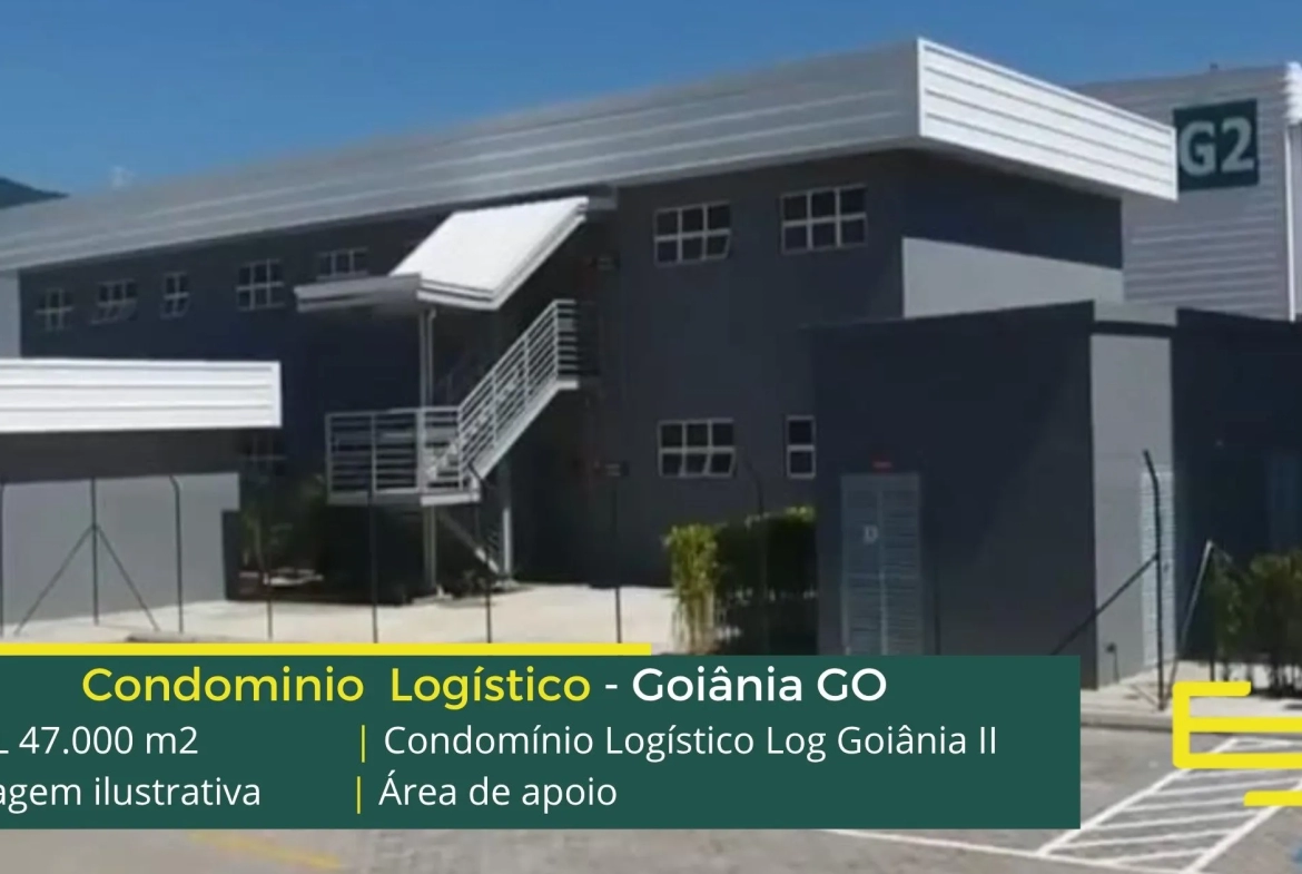 Aluguel de galpões logísticos na cidade de Goiânia, em condomínio com portaria 24 horas, CFTV e sobretudo, estacionamento e pátio de manobras, os galpões são modulares e conta com docas, altura de 12 metros e com mezaninos para uso administrativo.
