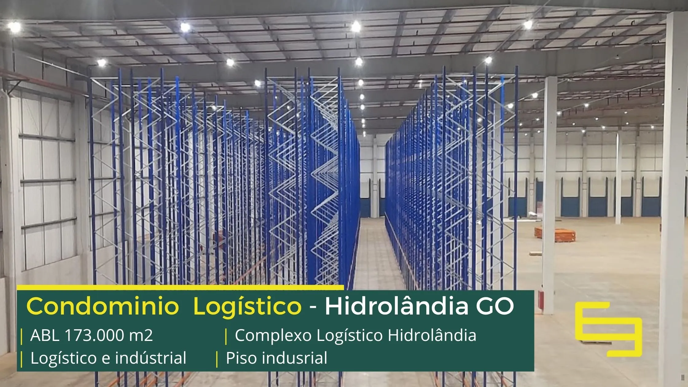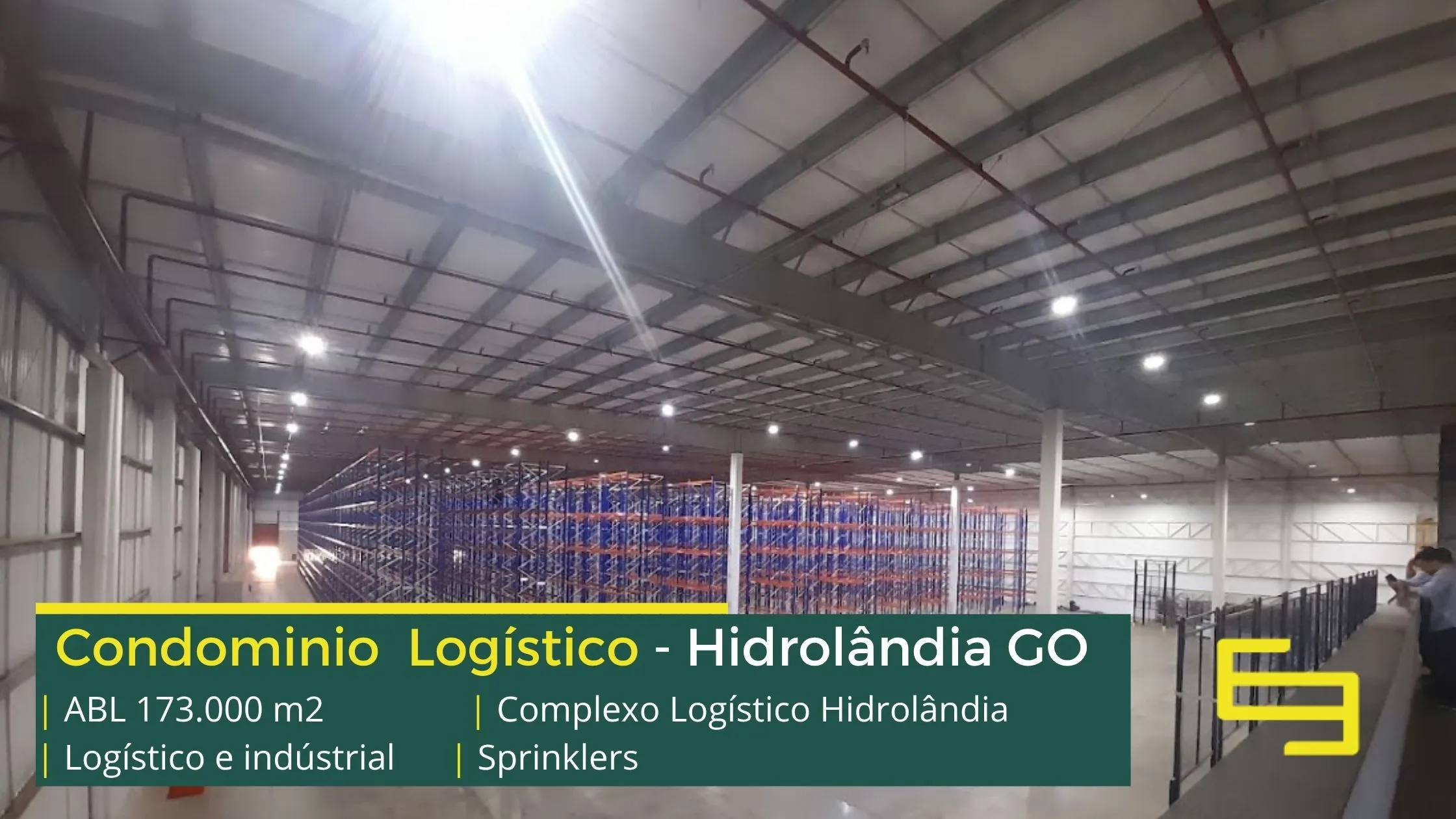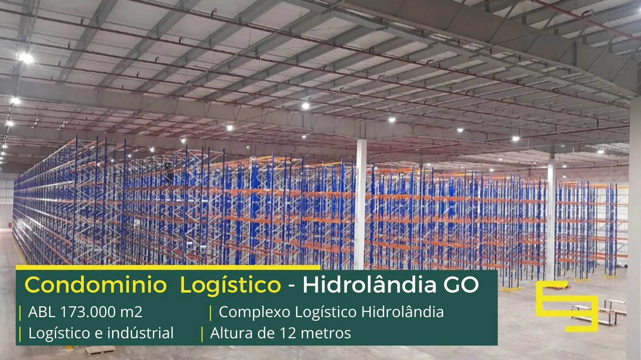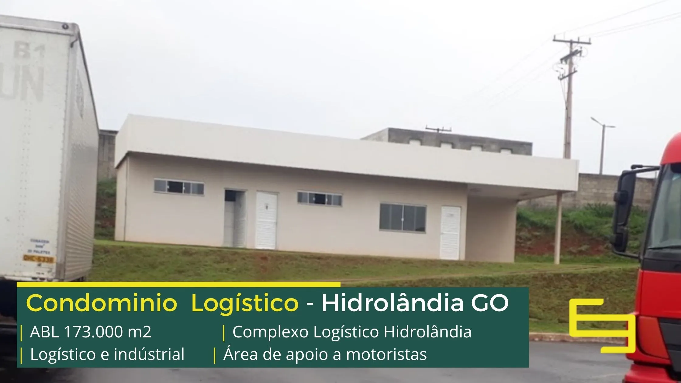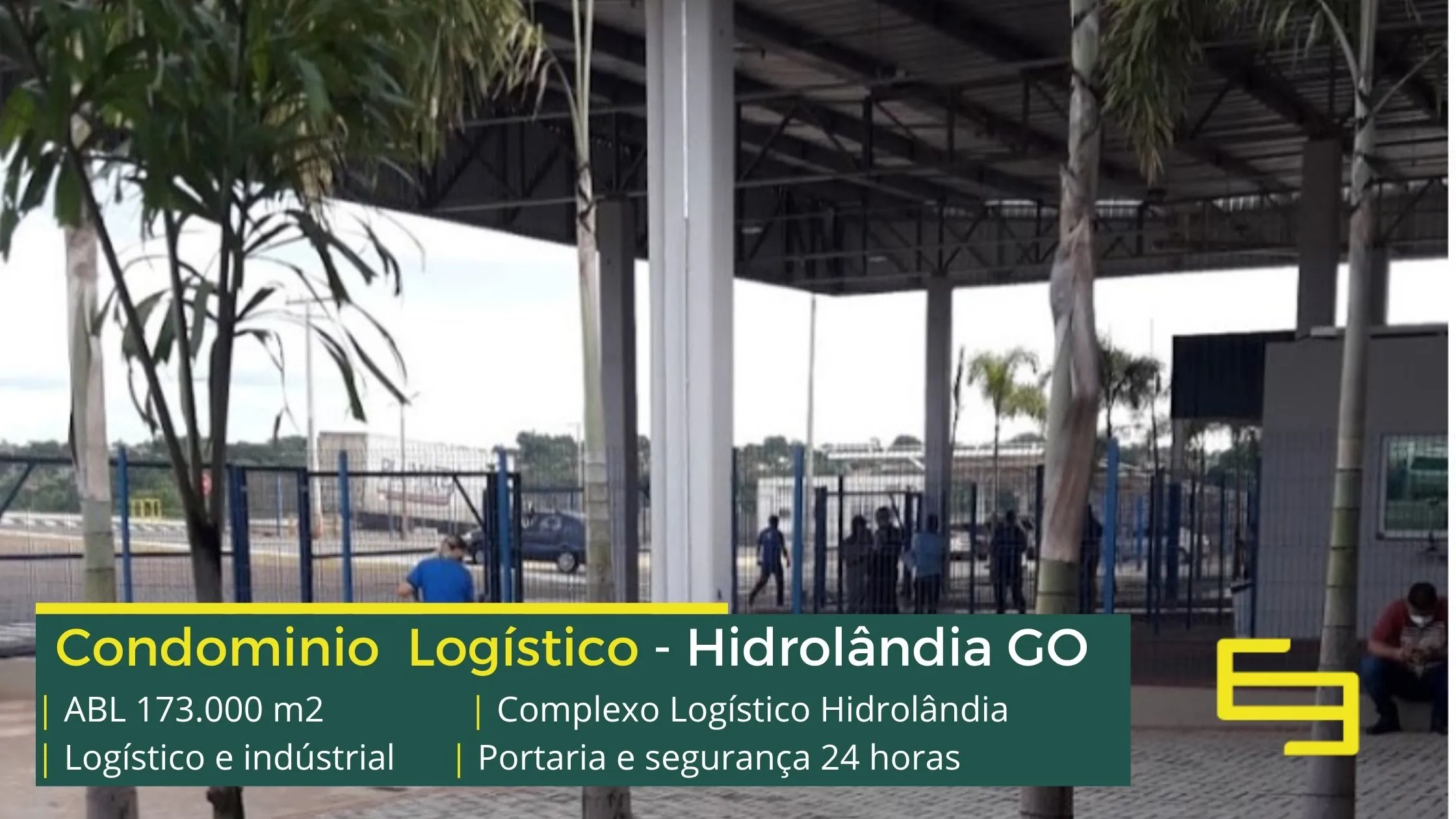 Galpão para alugar na cidade de Hidrolândia em condomínio logístico que conta com portaria com controle de acesso, monitoramento 24 horas, amplo pátio de manobras e além disso, galpões com docas, altura de 12 metros e com área administrativa.