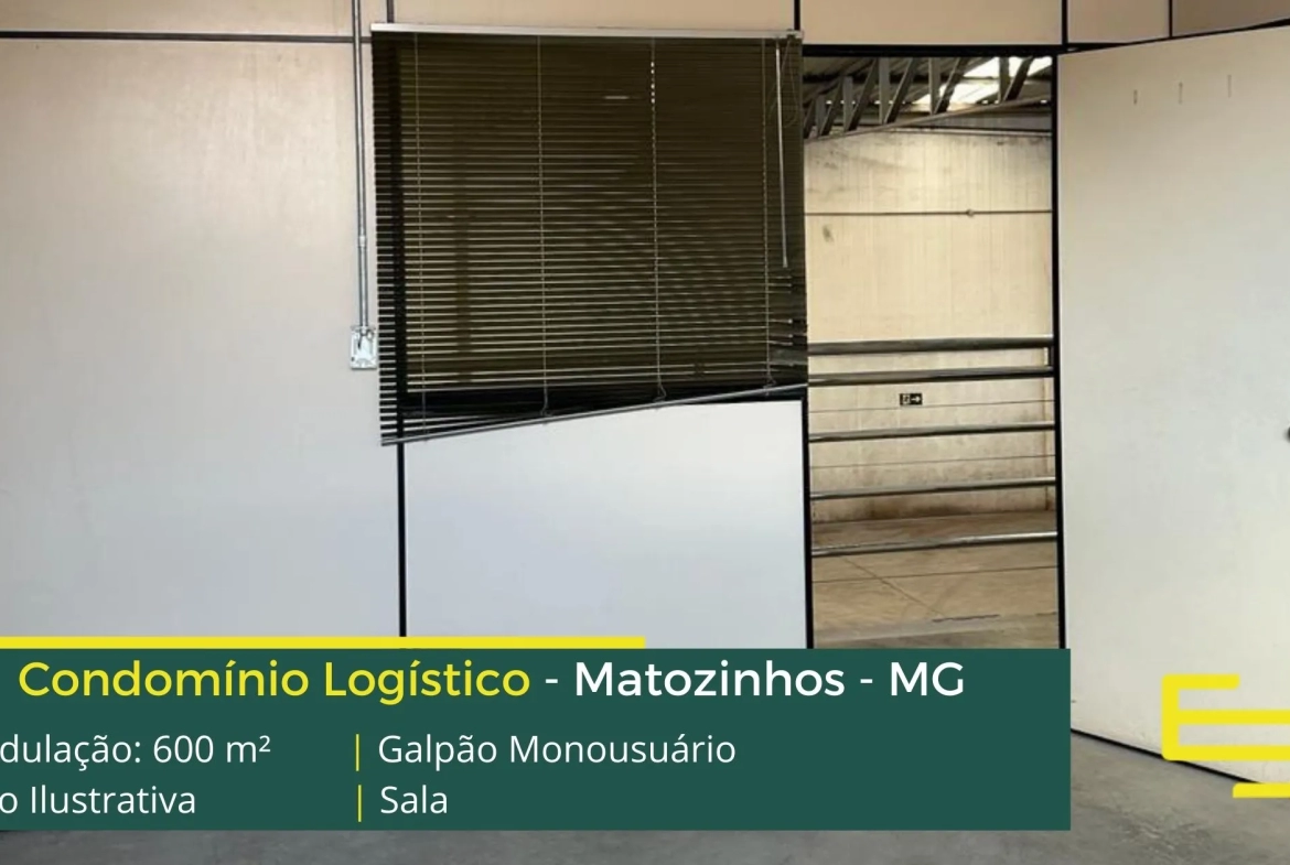 Aluguel de galpão em condomínio logístico na cidade de Matozinhos desenvolvido para operações logísticas de distribuição e sobretudo transportes, que possuem as seguintes comodidades: