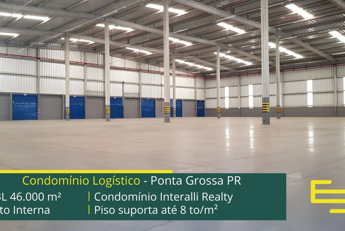 - Galpões para alugar em Ponta Grossa com piso industrial e polido.