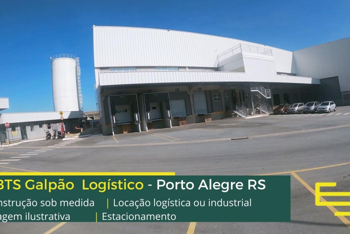 A locação dos galpões no modelo de BTS em Porto Alegre, normalmente contam com pulmão externo para espera de carretas, e além disso, estacionamento.
