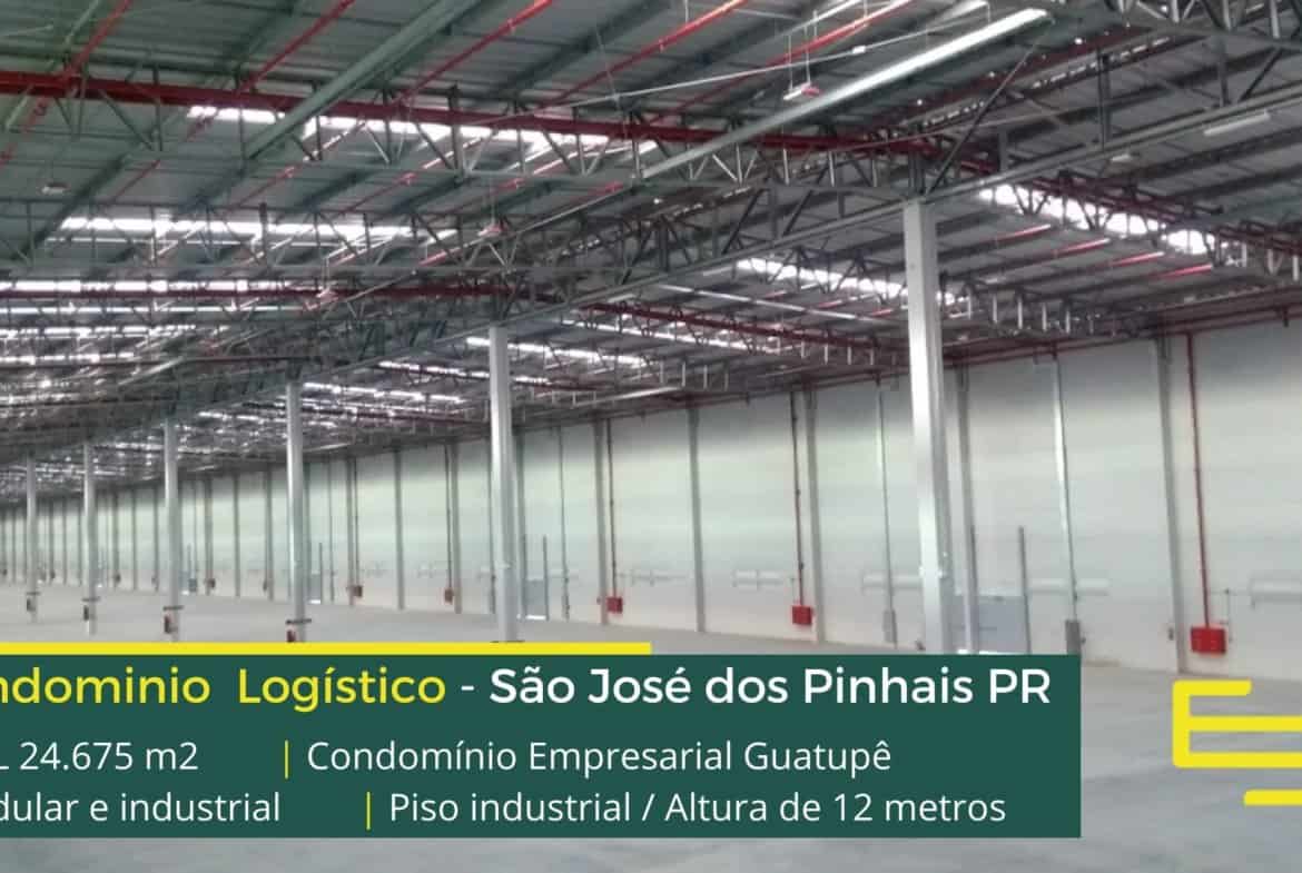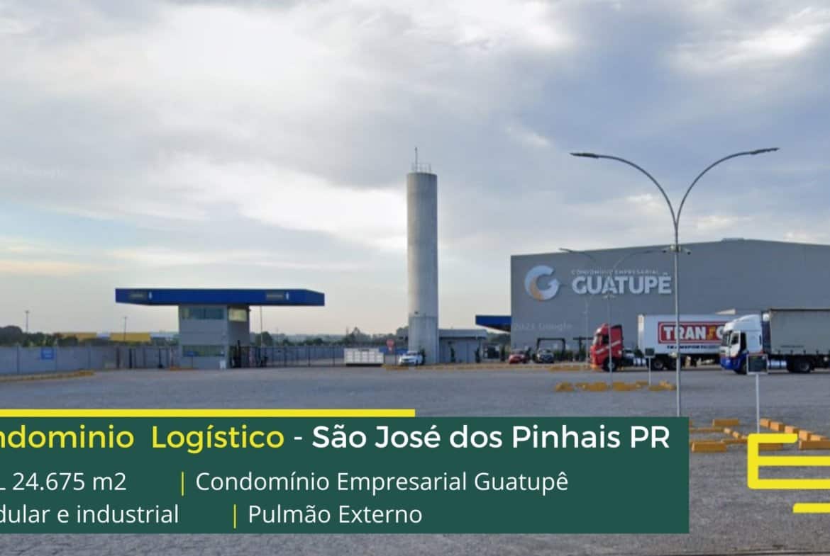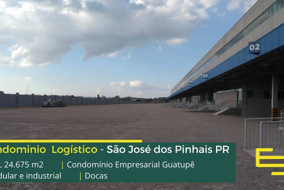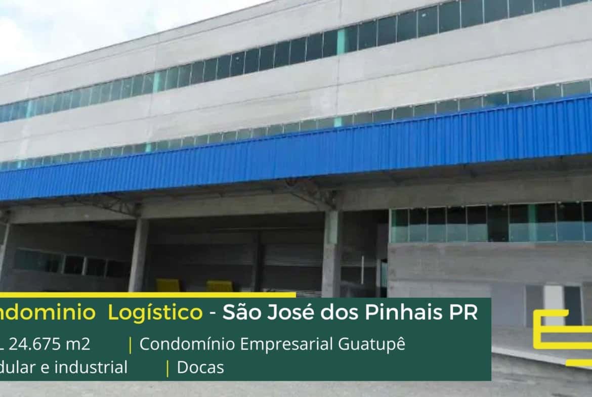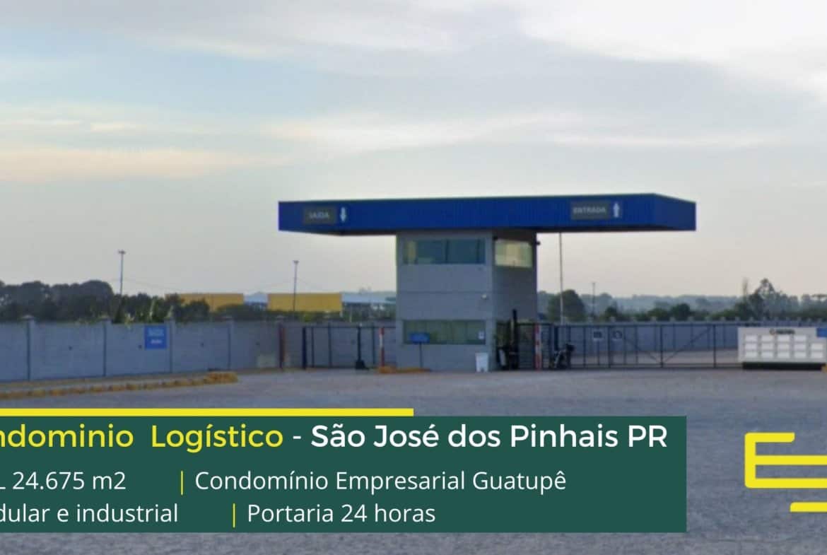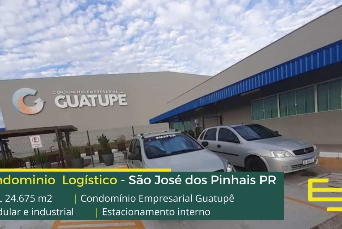 Aluguel de galpões em São José dos Pinhais PR em condomínio logístico com fácil acesso as Rodovias BR 116 e BR 277 e as cidades de Curitiba e Araucária, o condomínio Empresarial Guatupê conta com área total construída de 24.675 m² e que além disso, permite aluguel modular e flexível de galpão em São José dos Pinhais PR, a partir de 1.645 m².