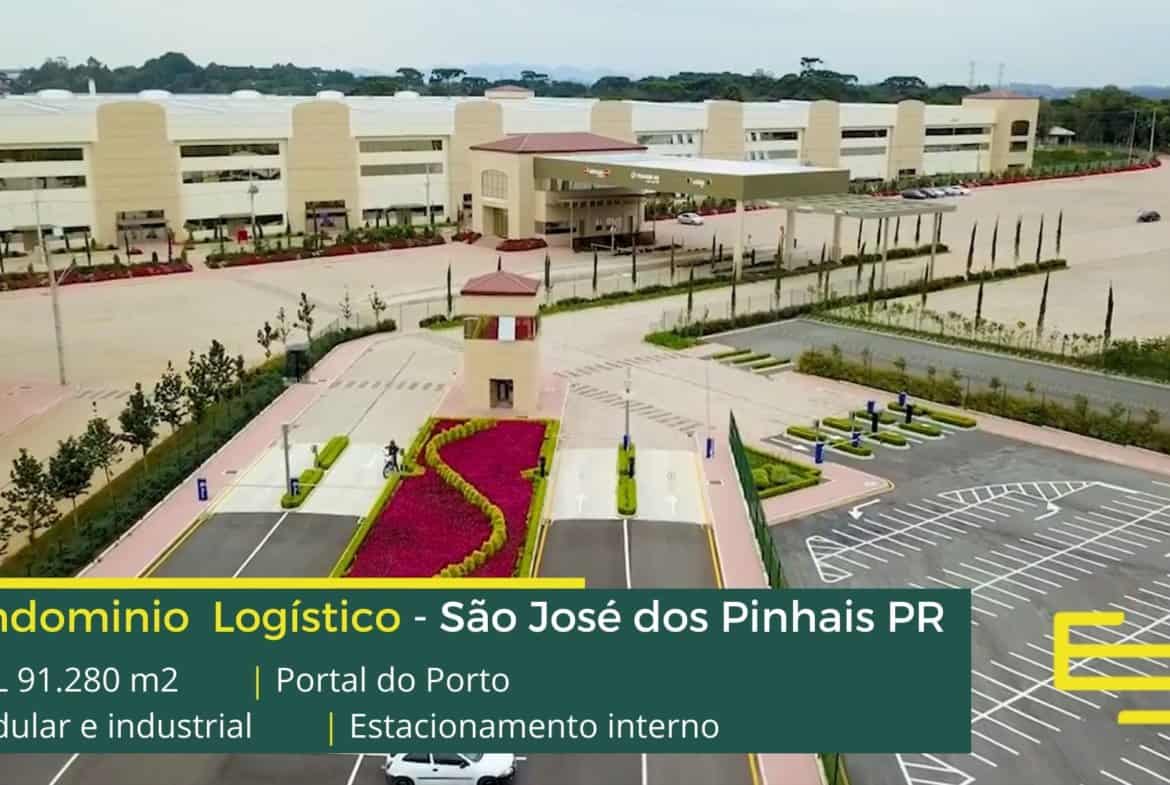 Portal do Porto é um condomínio logístico localizado em São José dos Pinhais, Paraná e permite locação de galpão com segurança 24 horas com cabine blindada, e além disso, gerador e sistema de sprinklers.