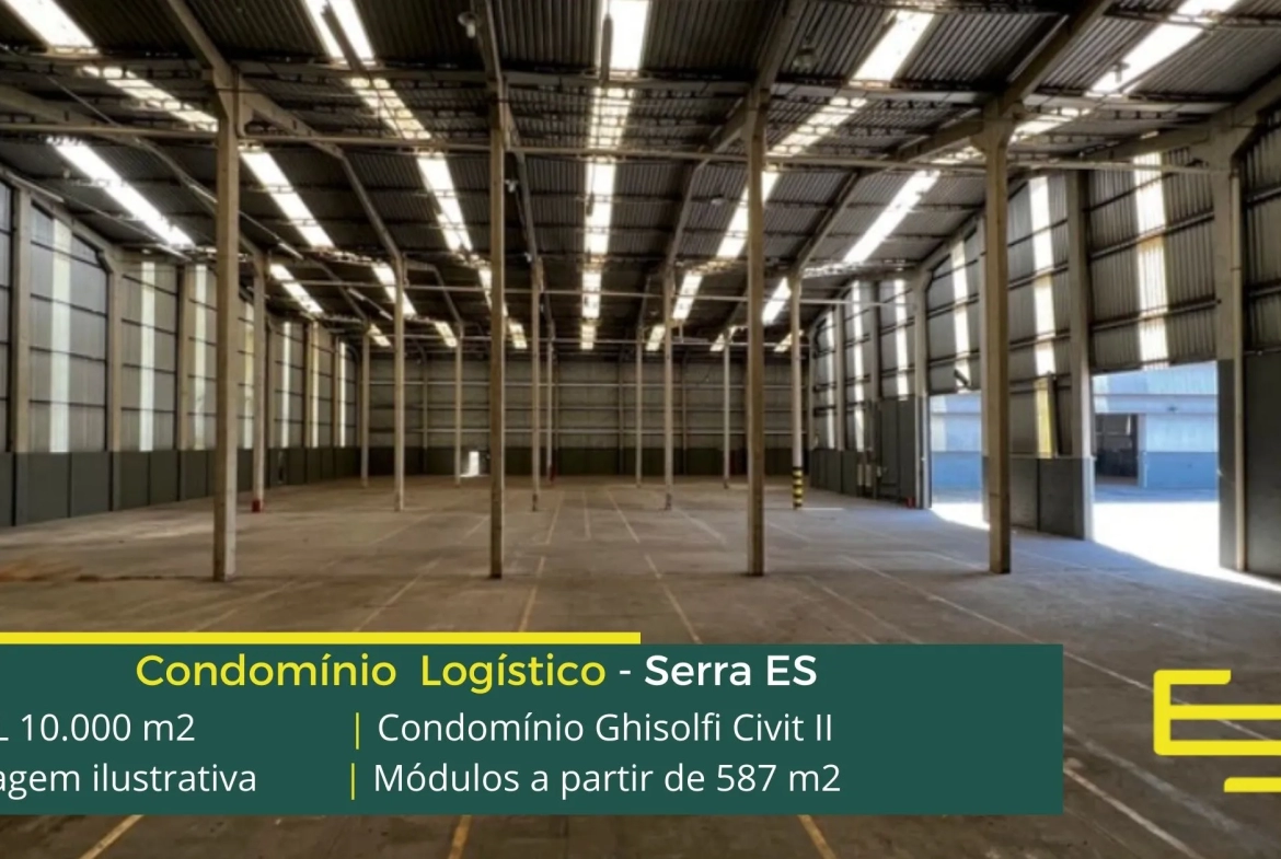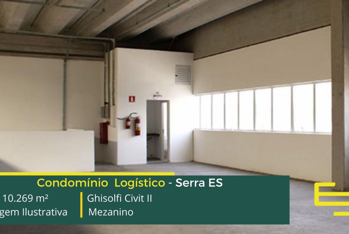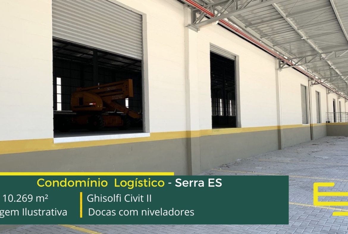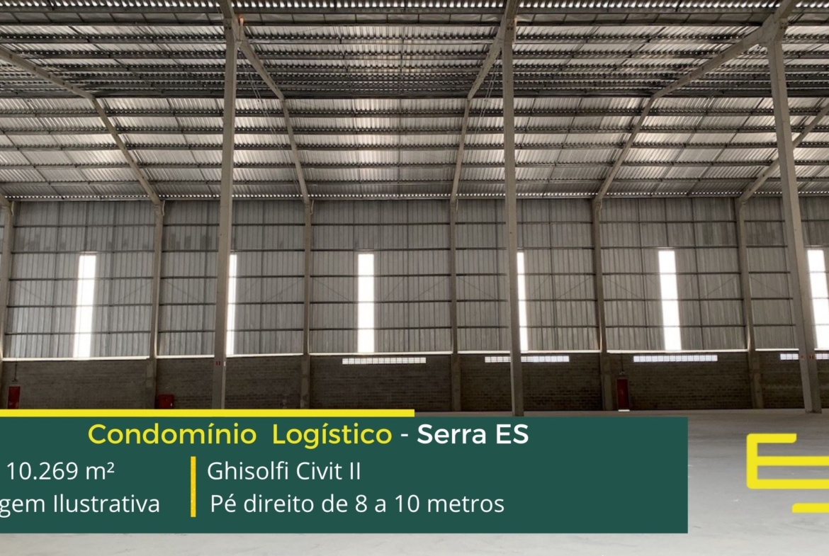 Galpões em Serra ES para alugar localizado em condomínio logístico, com fácil acesso a BR 101 e a Rodovia BR 262, e sobretudo, com fácil acesso a Vitória. O condomínio Ghisolfi Civit II conta com área total construída de 10.269 m² e sobretudo, permite locação modular e flexível de galpão em Serra ES a partir de 587 m²;