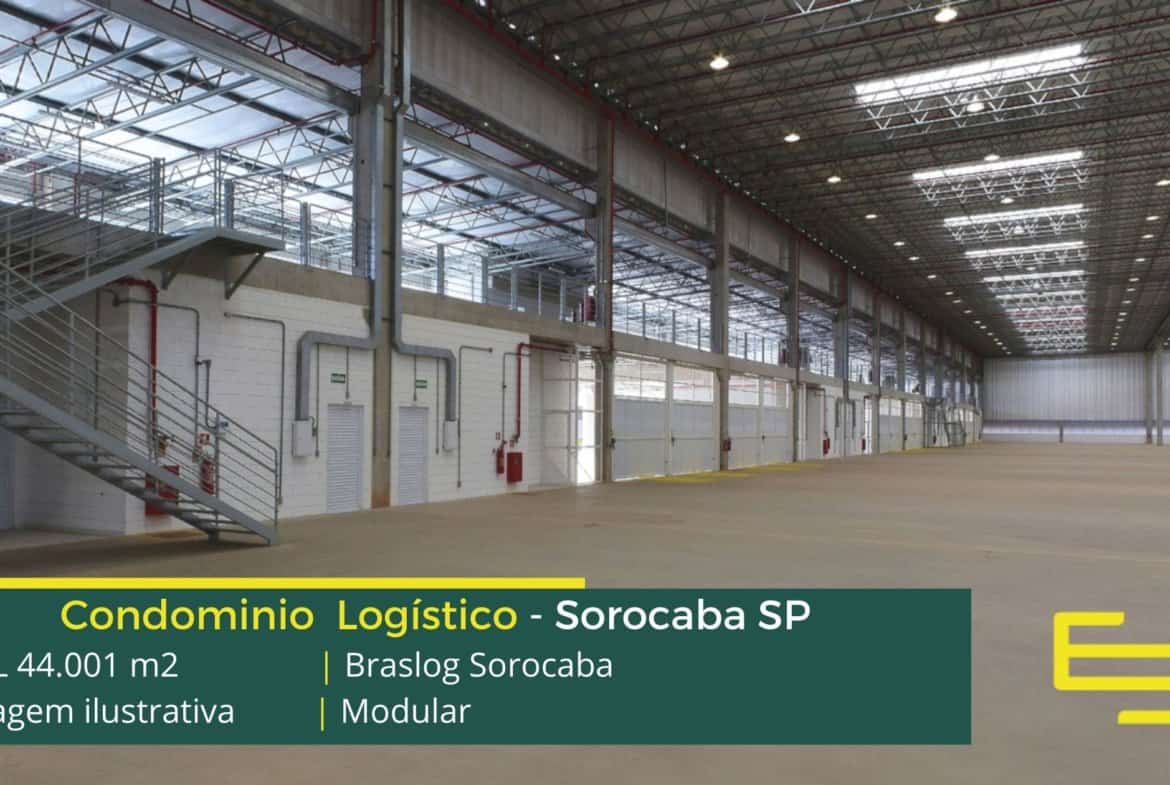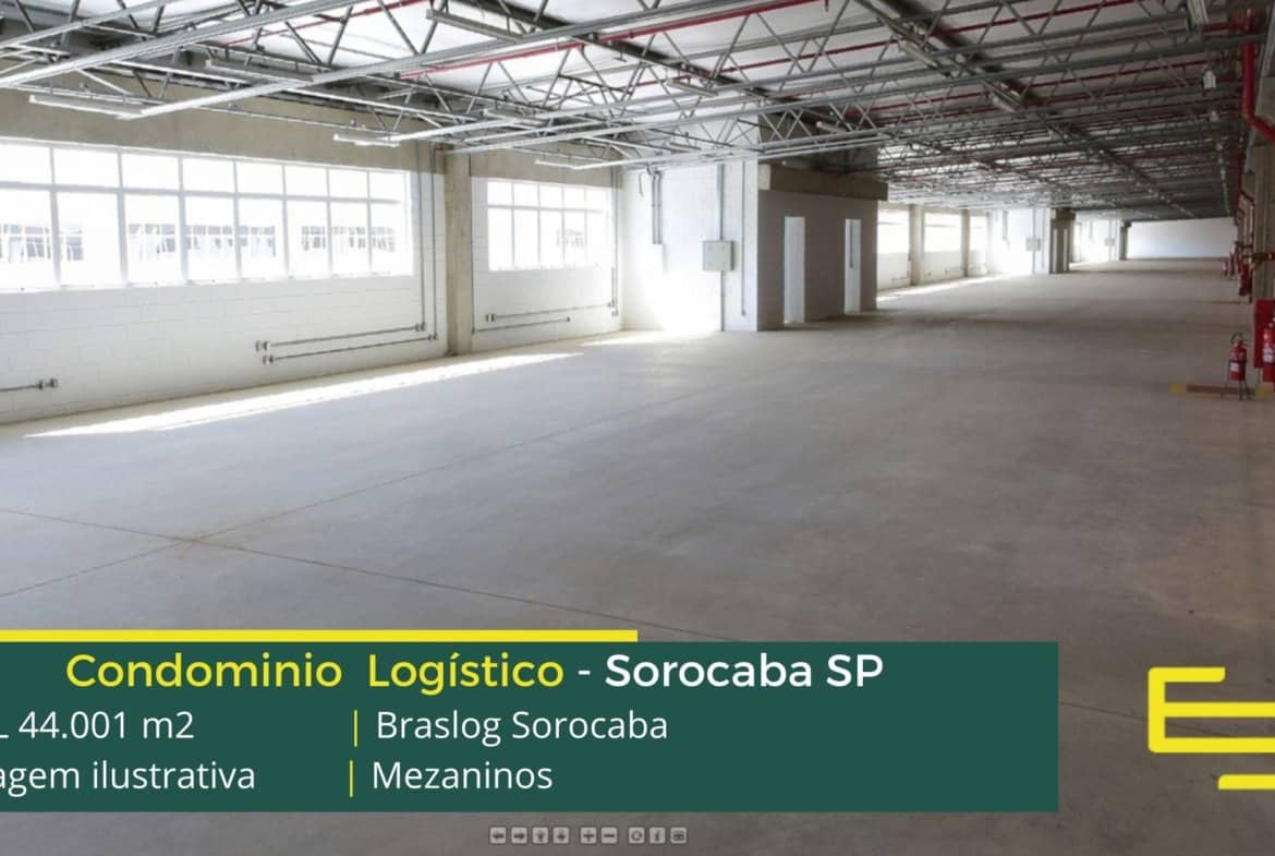 Aluguel de galpões em condomínio logístico em Sorocaba SP com piso de alta resistência com capacidade para 6 toneladas por m² e além disso, mezanino conversível em área de estocagem com piso de até 500kg/m