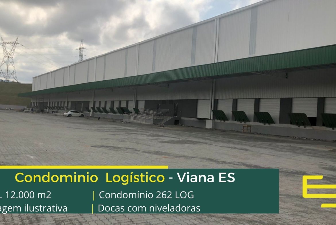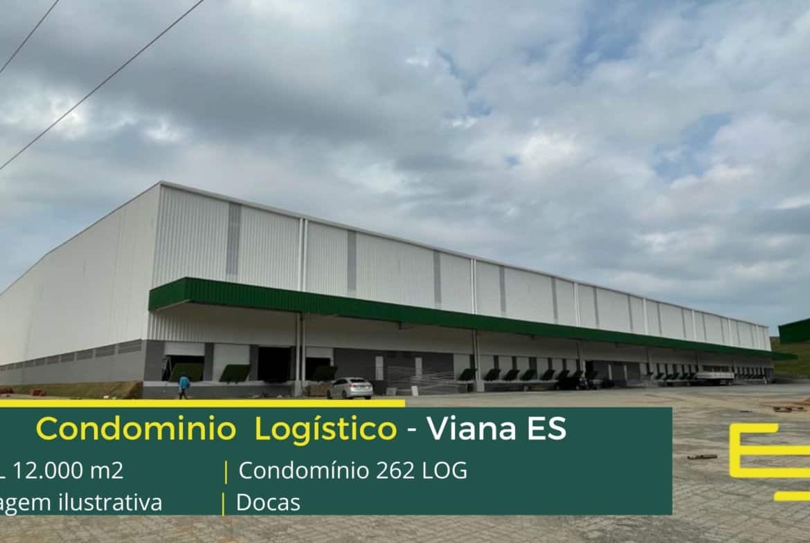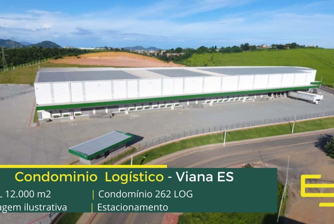Galpões para alugar em Viana ES, em condomínio logístico localizado a 200 metros da Rodovia BR 101 e a 40 km do Aeroporto de Vitória ES, o Condomínio 262 LOG.O conta com área total construída de 13.000 m², e além disso, com possibilidade de locação de galpão modular em Viana, a partir de 1.500 m²
