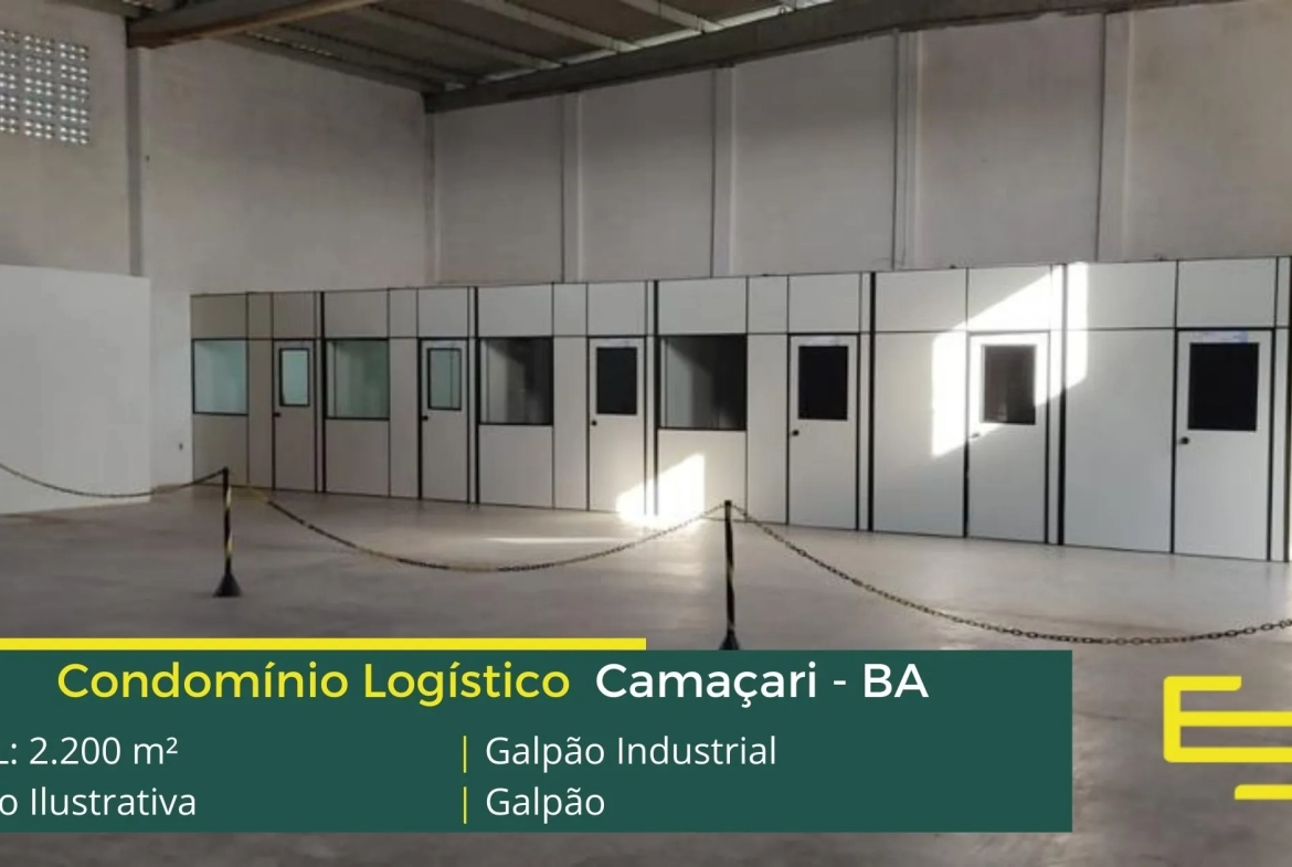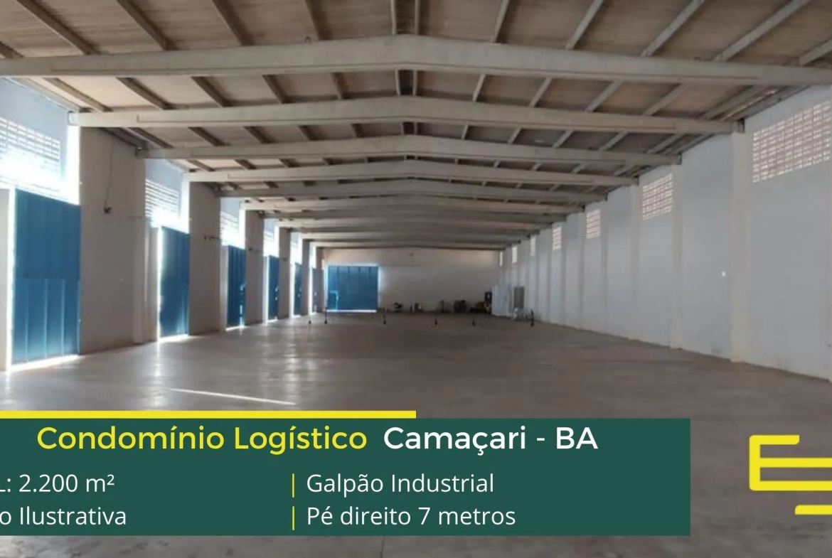 Galpões para alugar em Camaçari – que é ideal para logística, transportes e além disso, distribuição, possui diferencial em sua localização, as margens da BA-535, este galpão para locação possuí área locável total de 2.200 m².