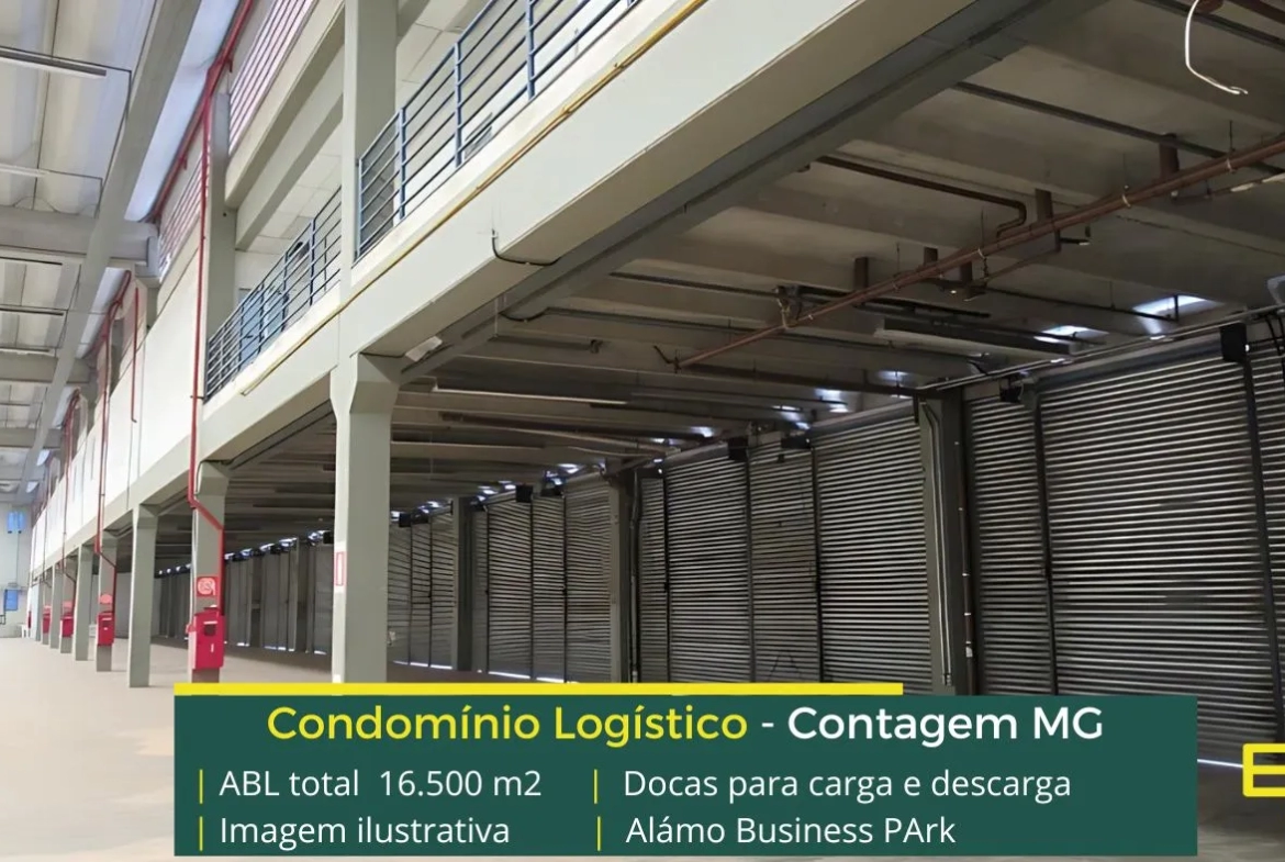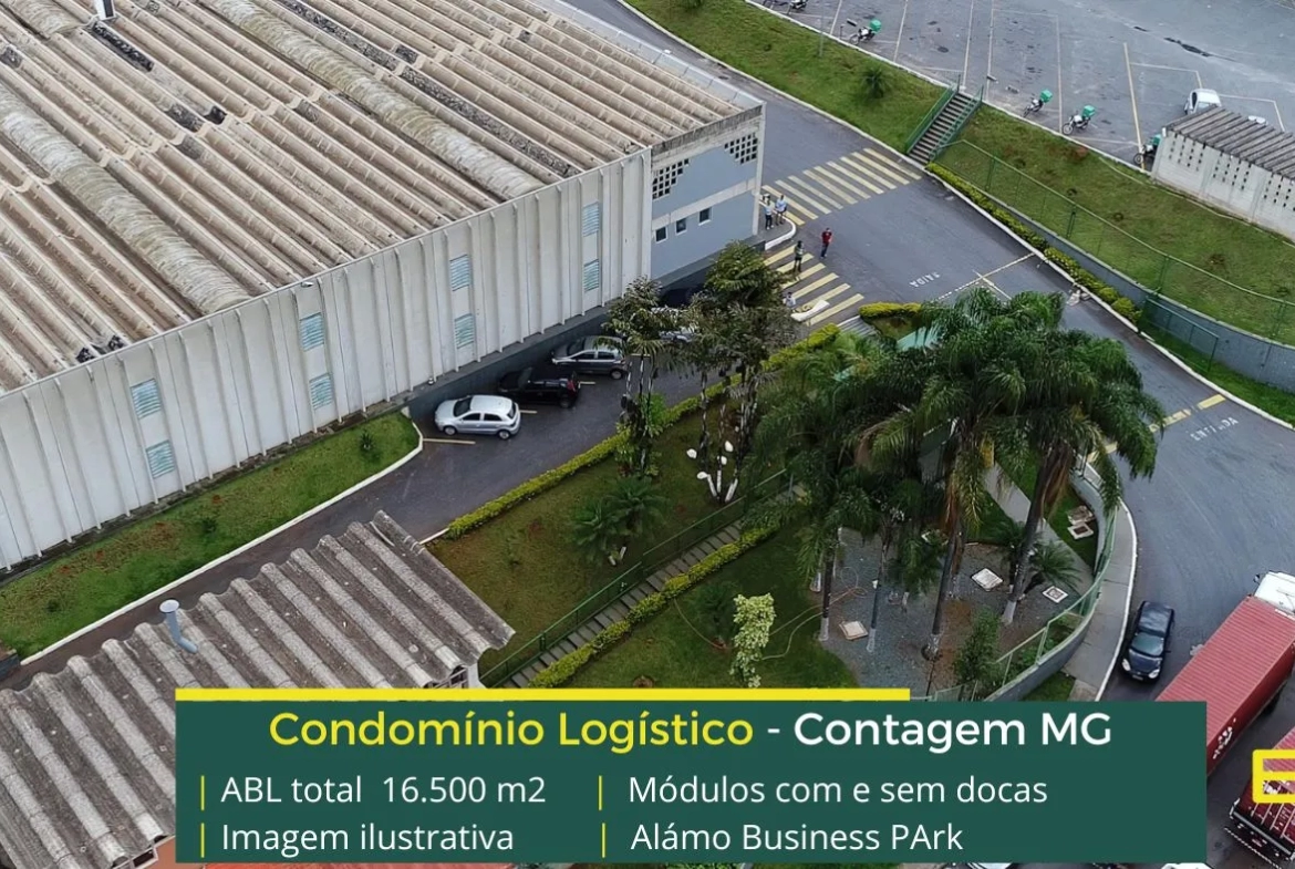 Galpão logístico para alugar em Contagem, em condomínio com completa estrutura para operações de logística e além disso, distribuição, com segurança completa e galpões que possuem docas e pátio.