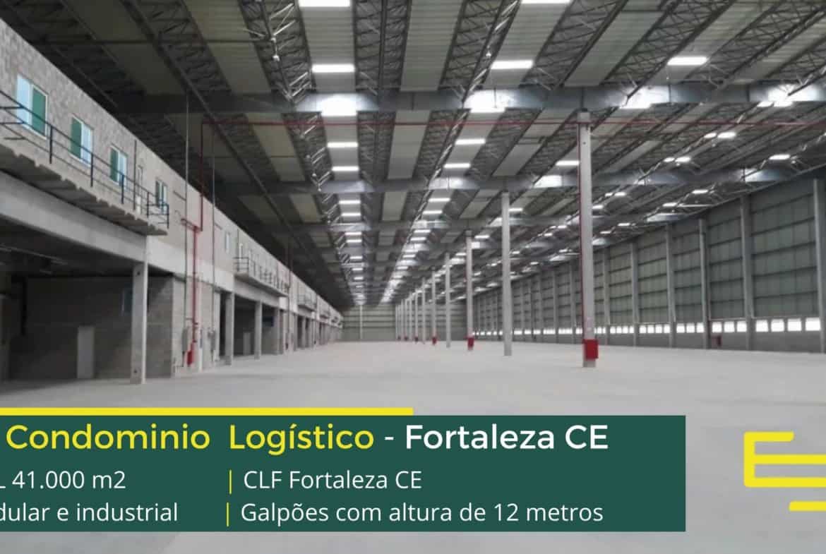 Galpões logísticos para alugar em Fortaleza CE a partir de 1400 m2, pé-direito livre 12 metros, resistência do piso 6 ton/m², em condomínio logístico que conta com área total construída de 41.685 m² e permite locação modular de galpões.