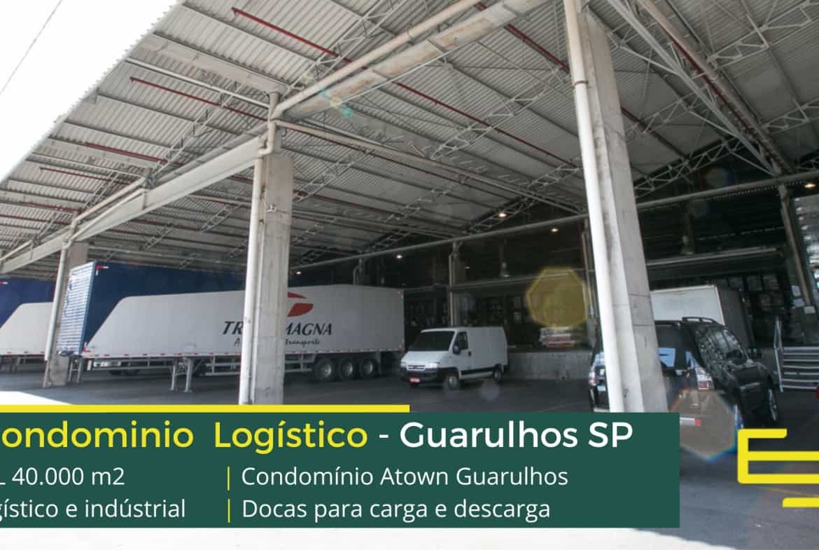Galpão para alugar em Guarulhos SP em condomínio logístico que conta com controle de acesso, portaria 24 horas, e além disso, os galpões contam com docas.