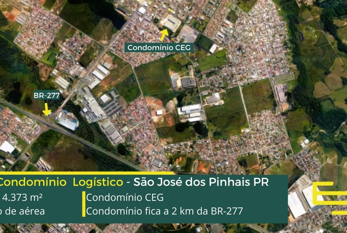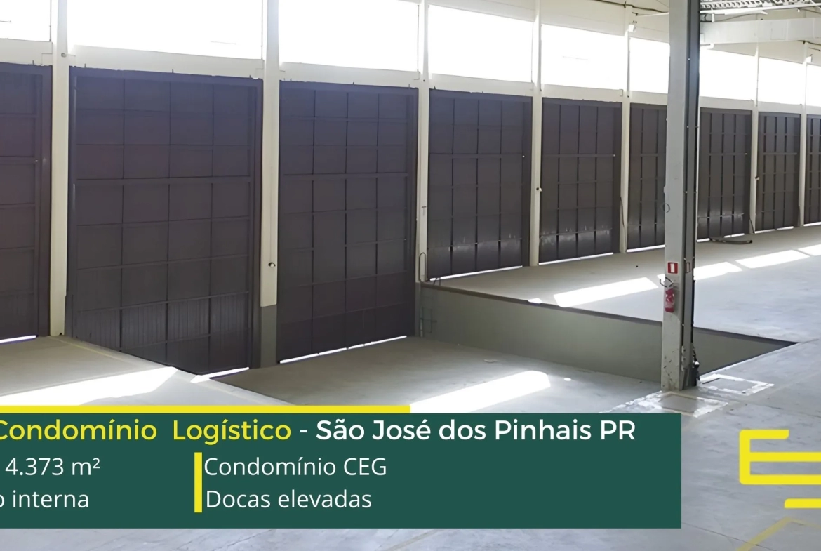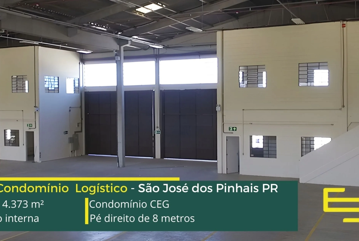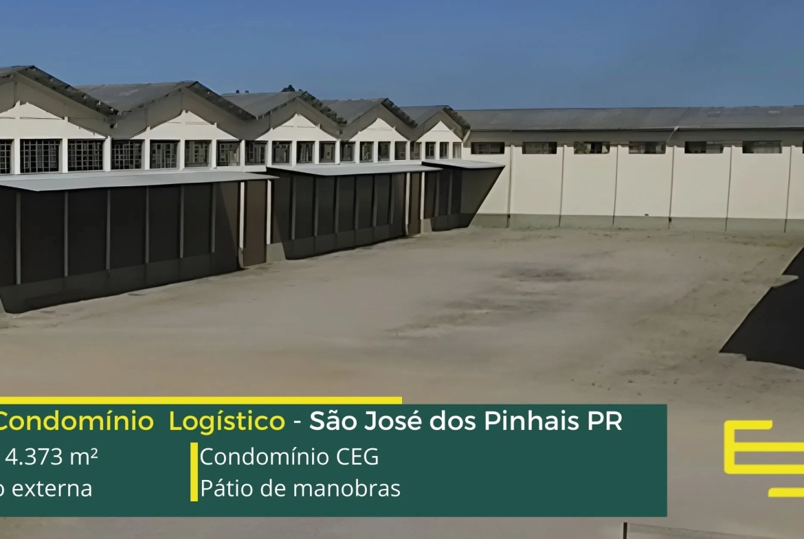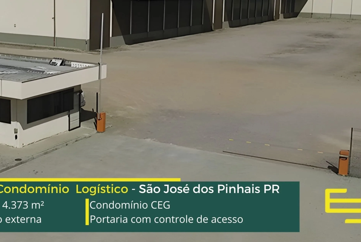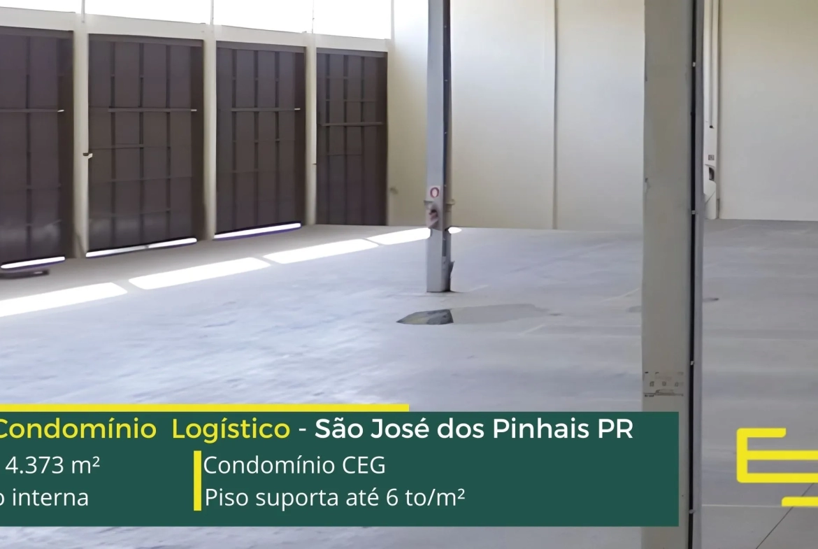 Galpões para alugar em São José dos Pinhais – Condomínio CEG. A princípio, trata-se de um condomínio logístico que oferece uma ABL de 4.373 metros quadrados, destacando-se por suas unidades a partir de 974 metros quadrados.