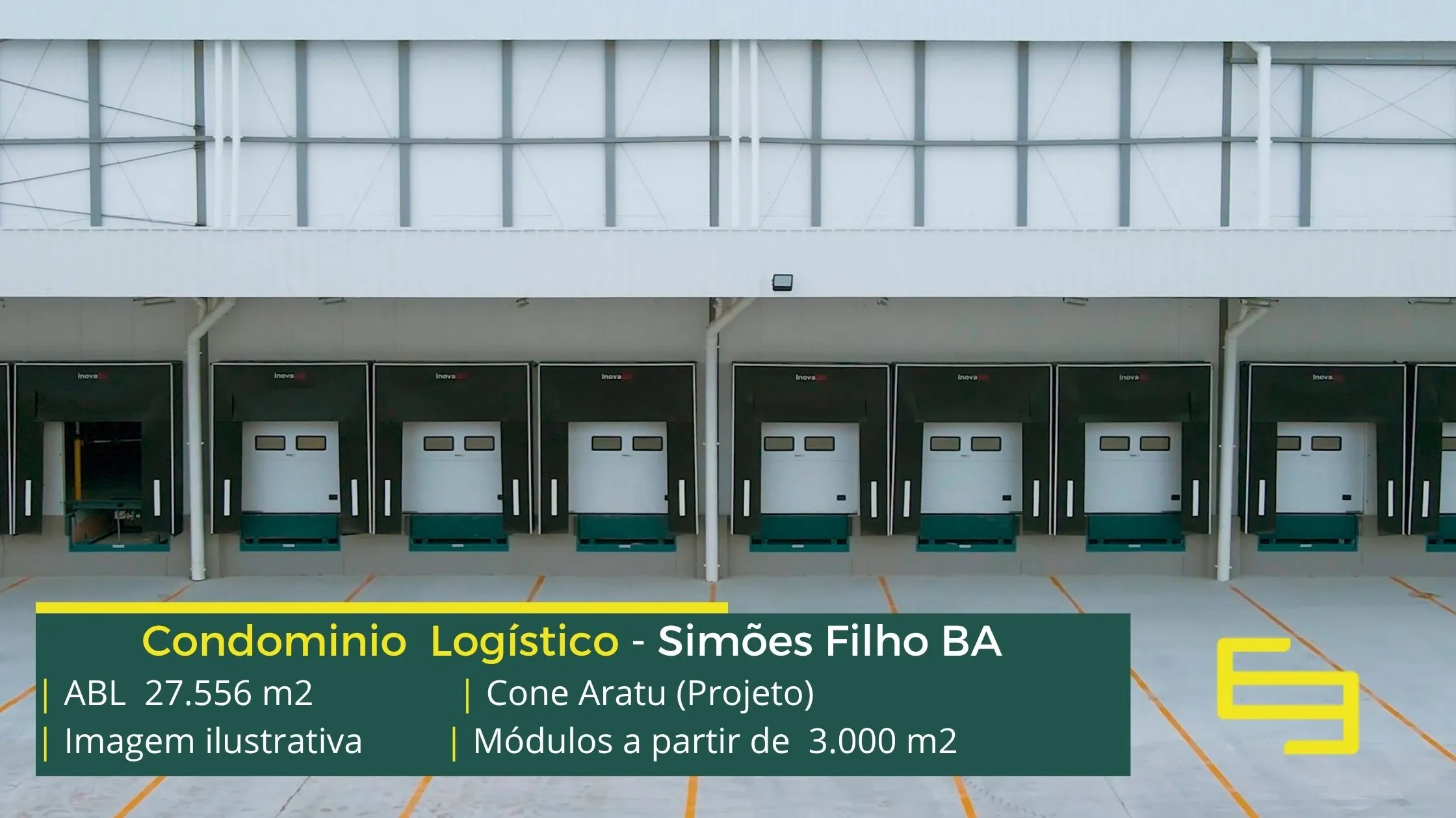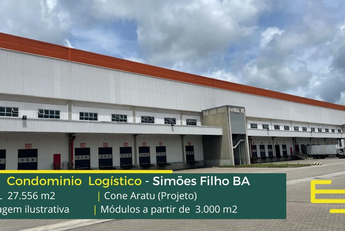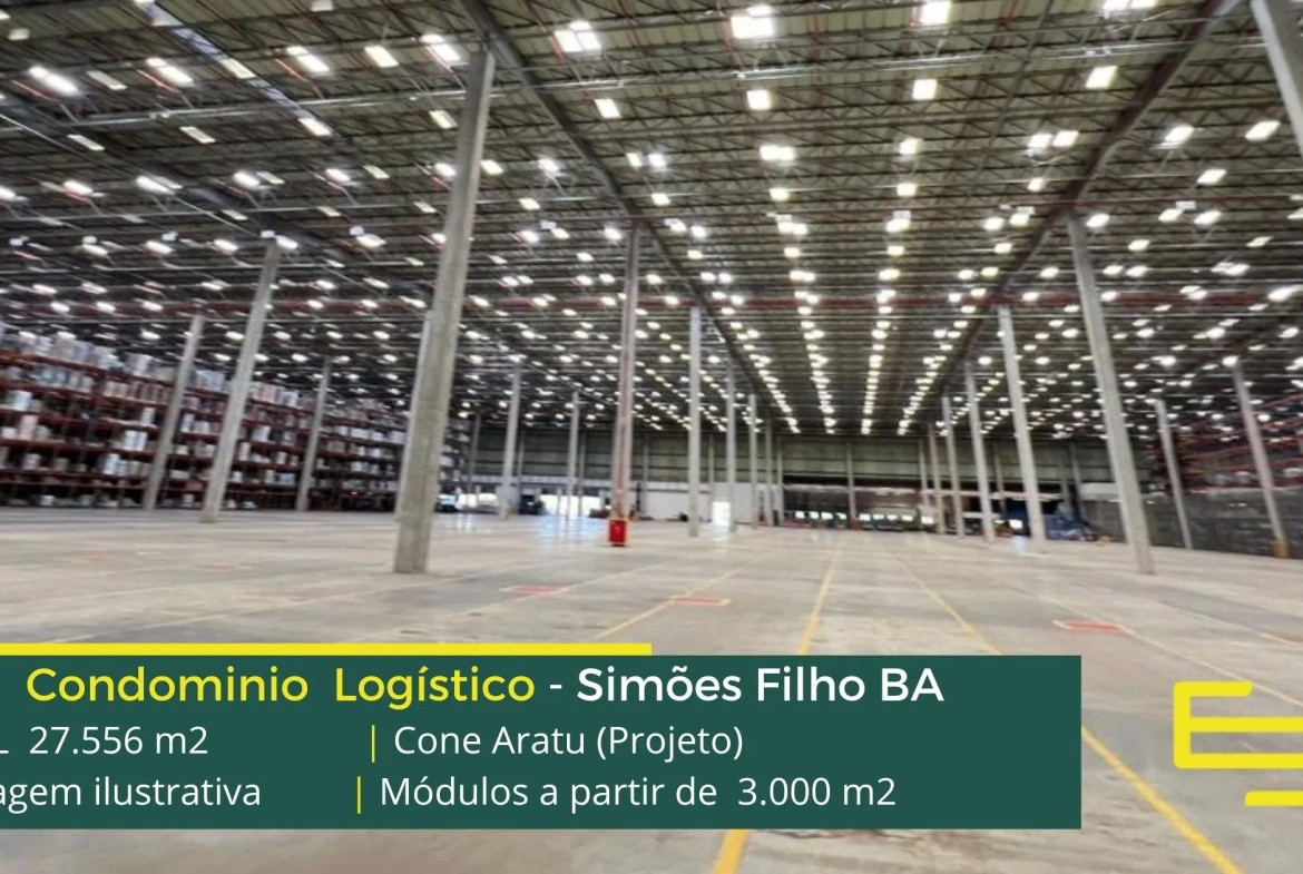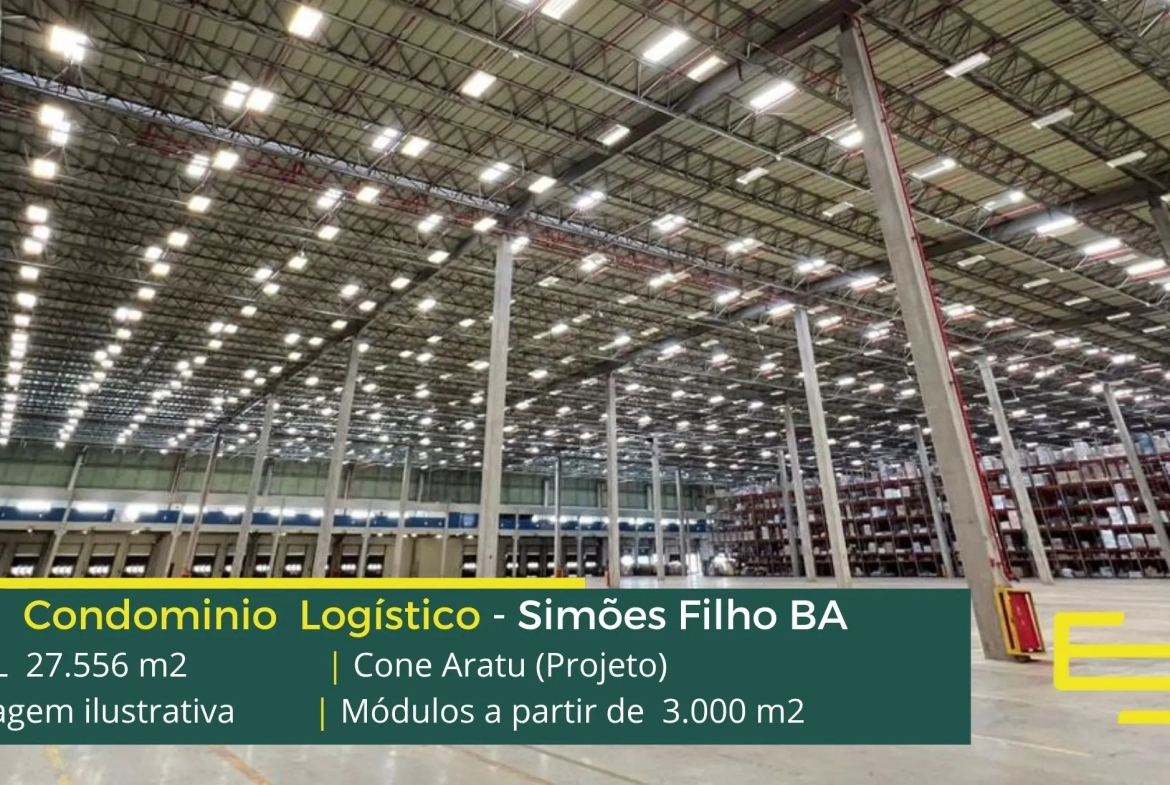 Aluguel de galpão logístico em Simões Filho, em condomínio estrategicamente localizado na região metropolitana de Salvador, com completa estrutura de segurança como portaria 24 horas, área de apoio, controle de acesso informatizado, e que permite locação de galpão em Simões Filho BA com docas para carga e descarga, e com pátio de manobras.