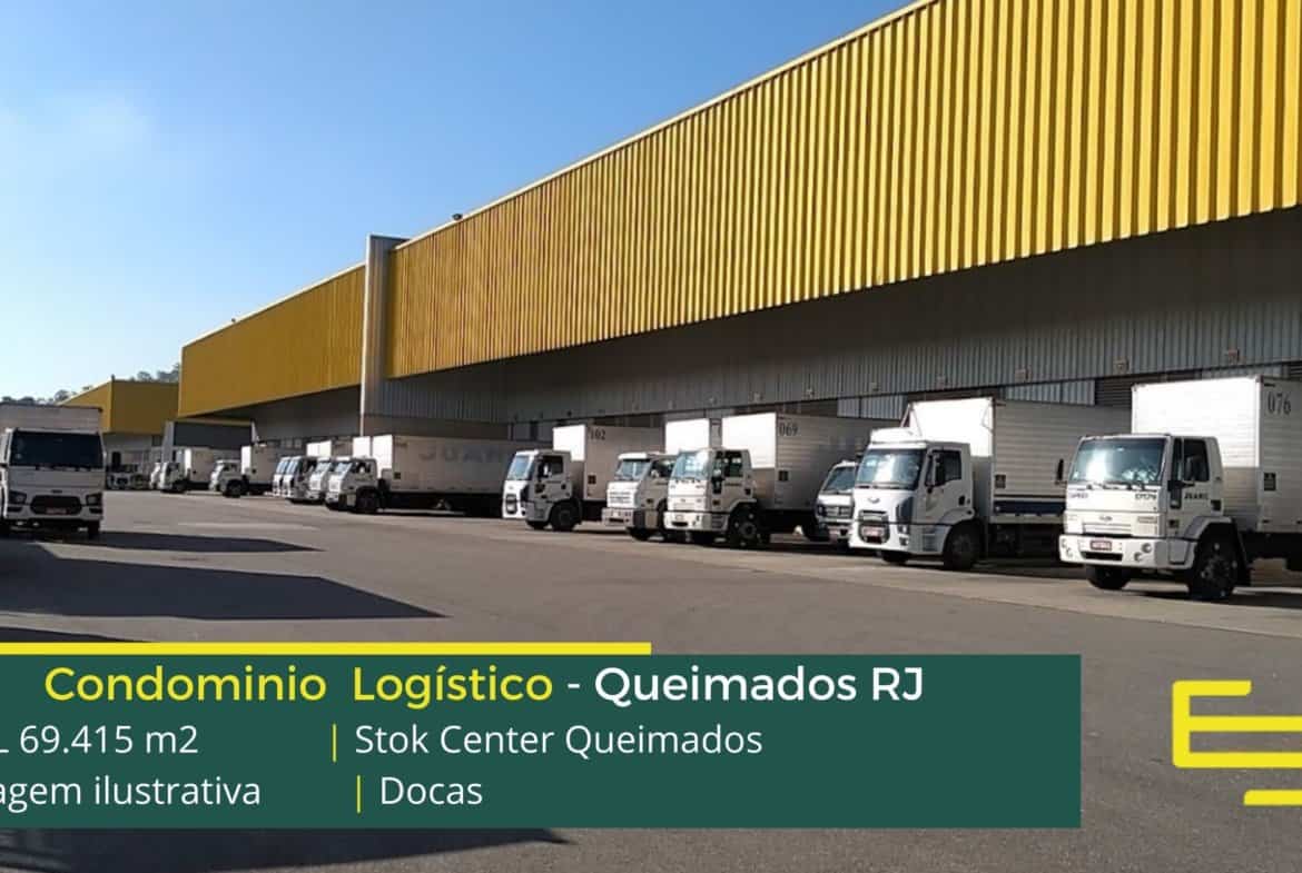 - Locação de galpão em Queimados com docas para carga e descarga com previsão, inclusive de niveladoras.
