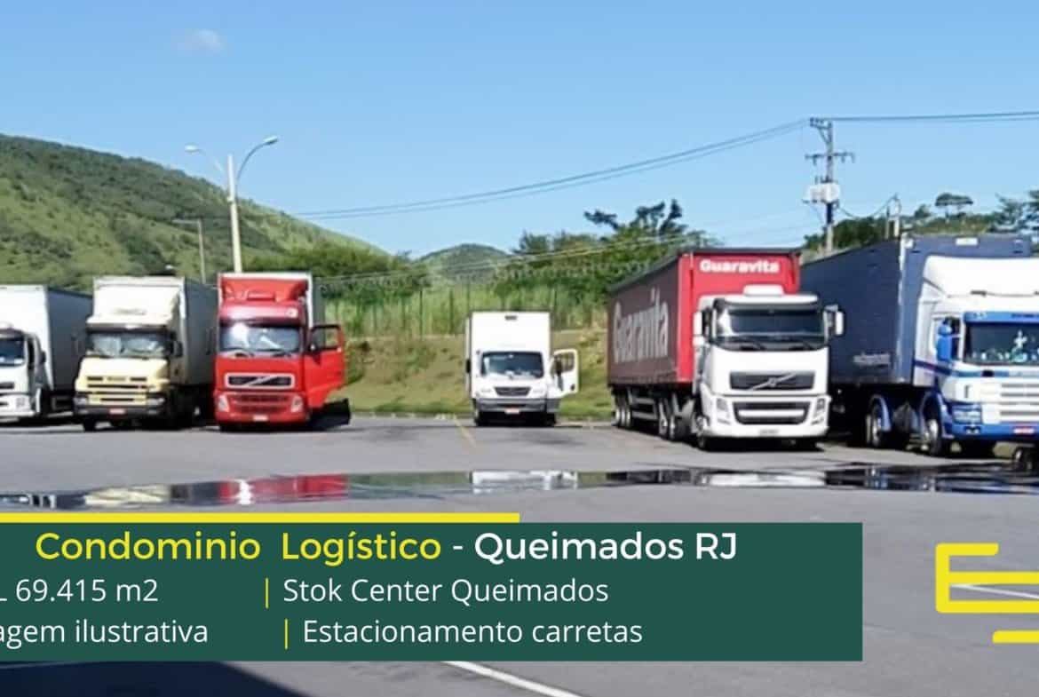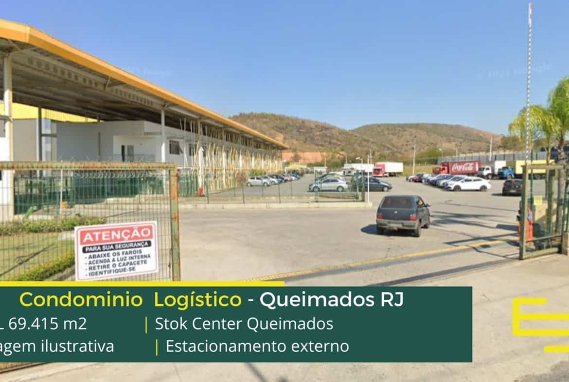 Condomínio logístico de aluguel de galpões em Queimados conta com amplo estacionamento interno e externo além disso: