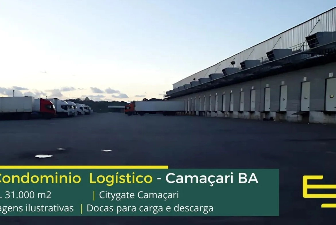 Galpão logístico e industrial para locação em Camaçari BA, com docas, pátio pavimentado, piso industrial e sobretudo, estrutura de segurança, com portaria 24 horas.