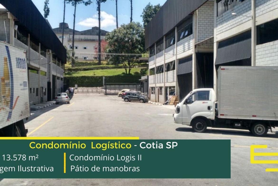 Galpões para locação em Cotia – Condomínio logístico com localização privilegiada, localizado na AV. João Paulo Ablas. O condomínio Logis II conta com área locável de 13.578 m², e permite alugar galpão a partir de 800 m²;